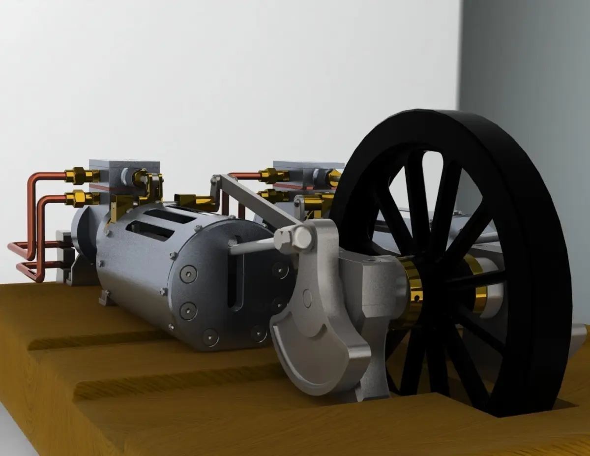 Vertical Twin Steam Engine with Reverse Gear