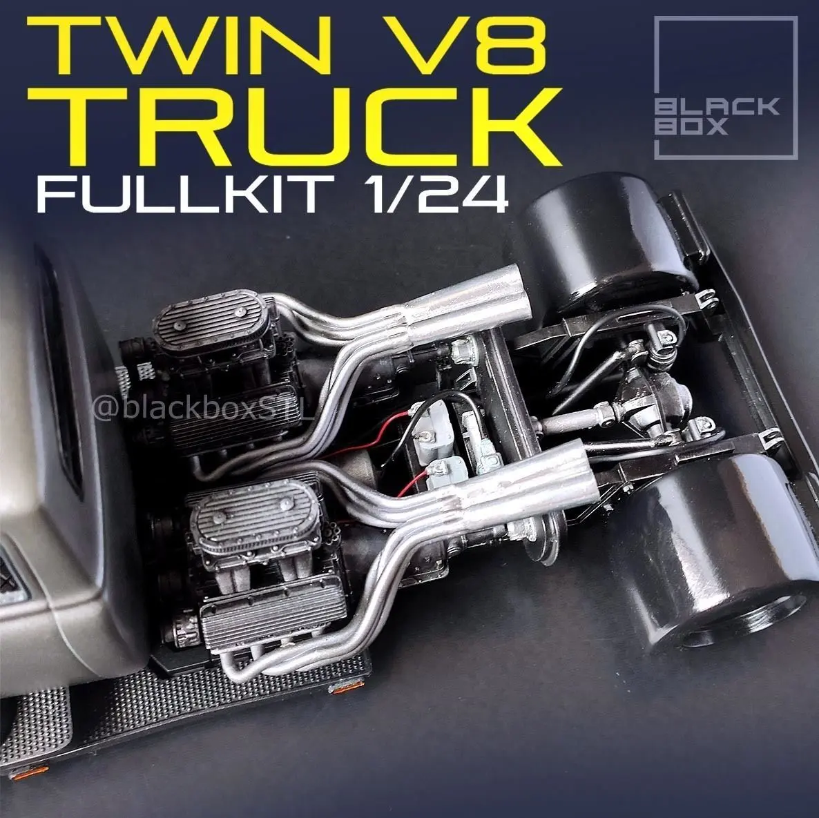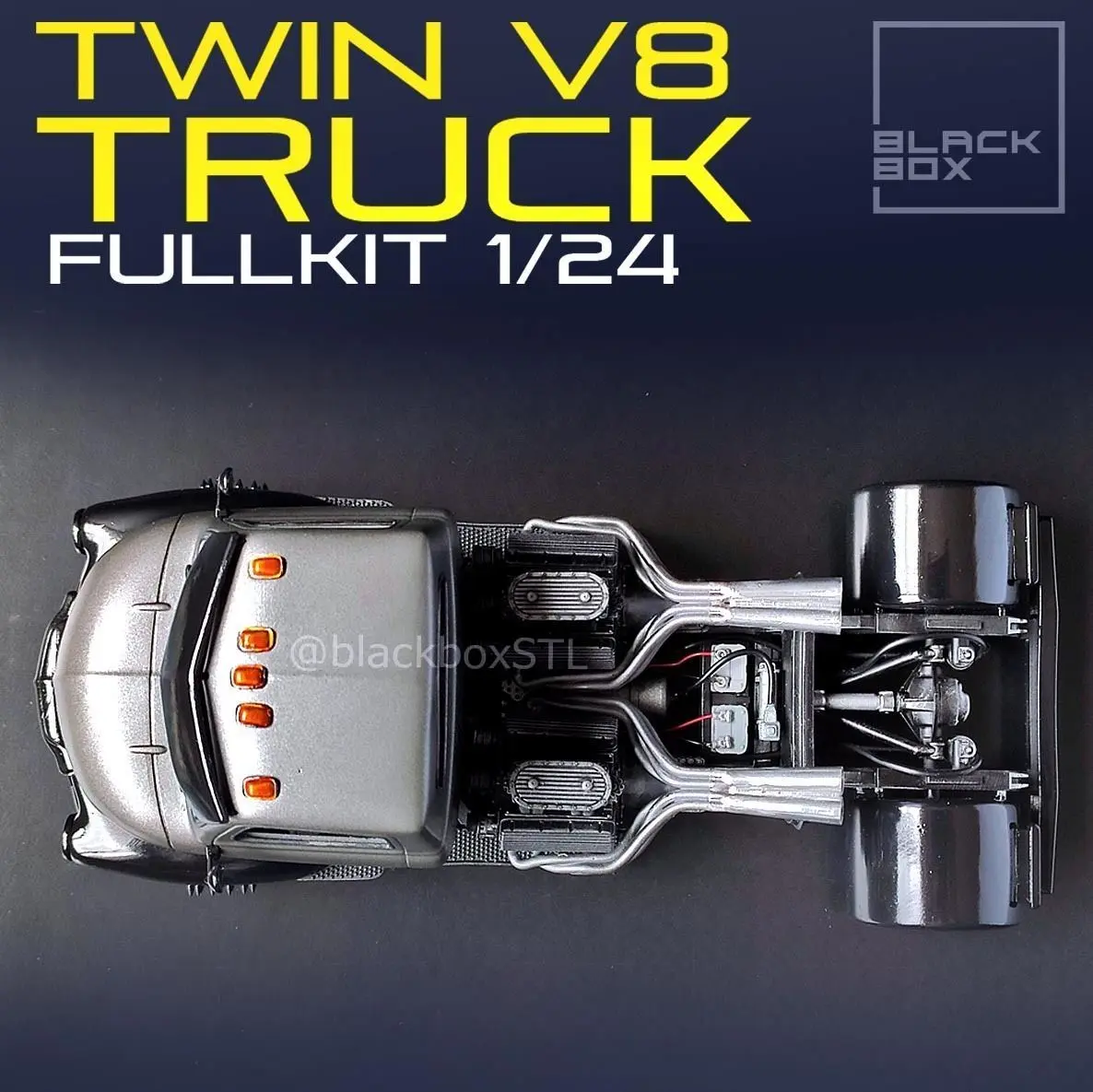 3D Printable file of Complete Full modelkit of a Twin V8 truck.