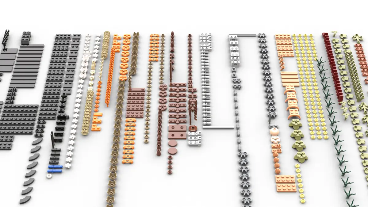3D LEGO Brick Templates: This file includes templates from the specified LEGO set, with each design provided as a separate object scaled to the exact dimensions of real LEGO bricks. This is crucial for ensuring that the 3D printed parts are fully compatible with actual LEGO pieces.
