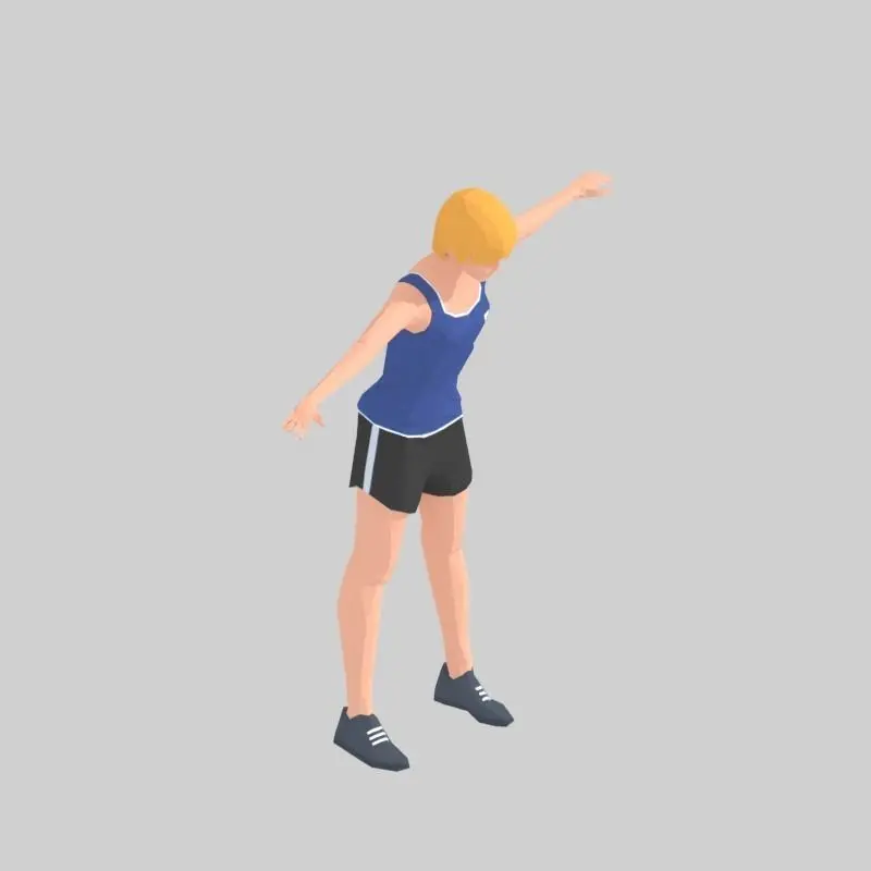 Animations of exercise Woman Low poly3d model in flat surface style.Animation created in CAT system and exported to FBX files for loop sequence.Extra textures as bonus