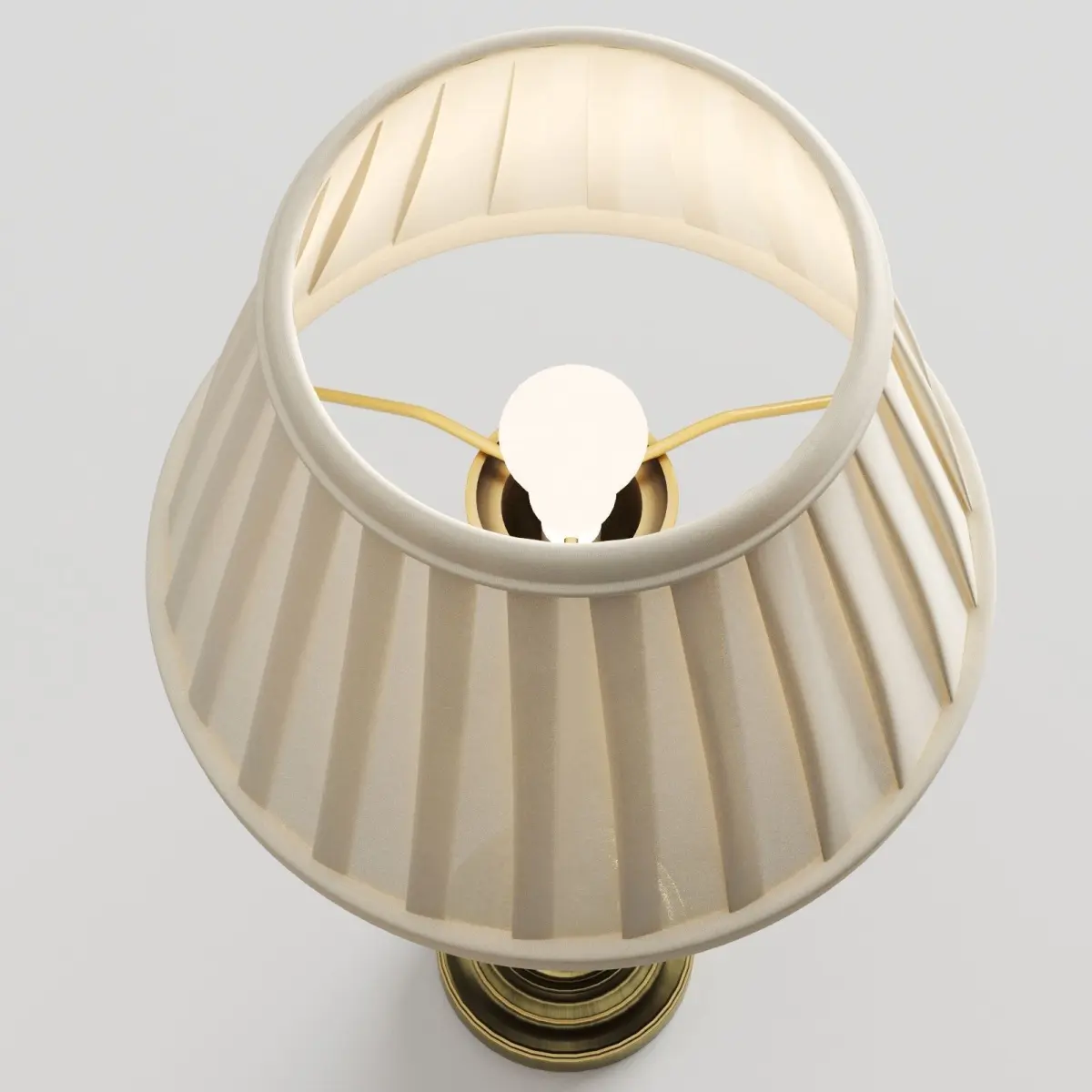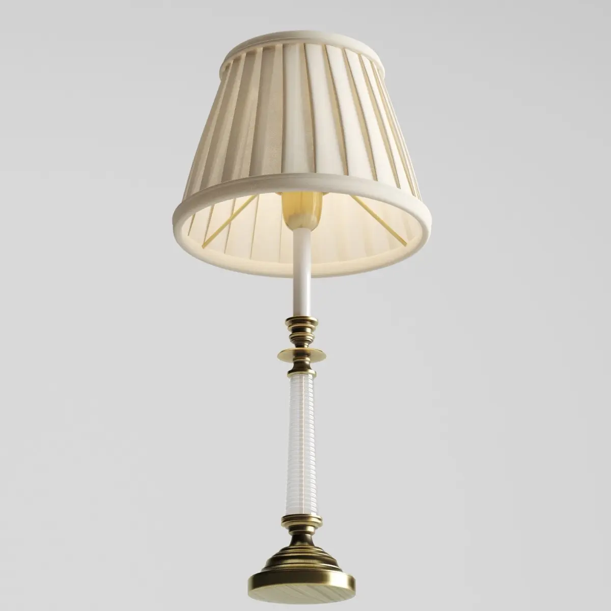 3D model of a desk / table lamp, in glass and brass base with fabric abat-jour, made by Vaughan Designs. Mesh is mainly based on quads, smooth and clean.