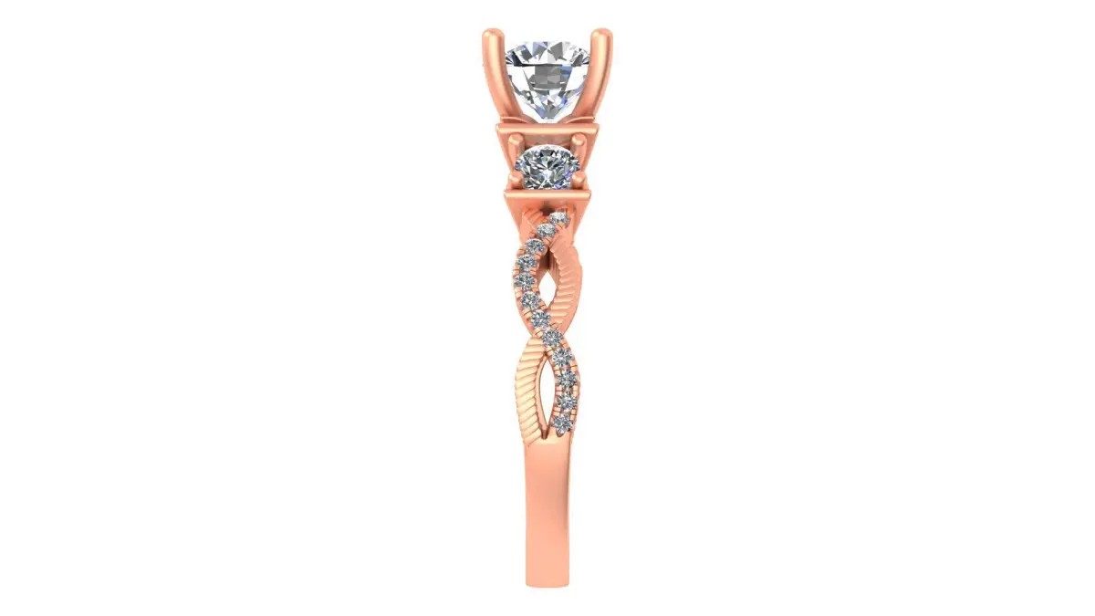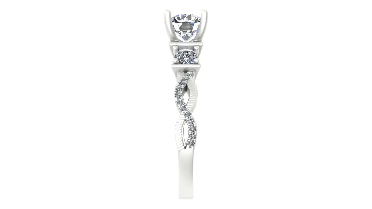 This Twisted Infinity Engagement Ring is a symbol of eternal love, featuring a gracefully intertwined band design that represents infinite commitment. The 6.5 mm round-cut center gemstone is securely held in a four-prong setting, allowing maximum light reflection to enhance its brilliance.
