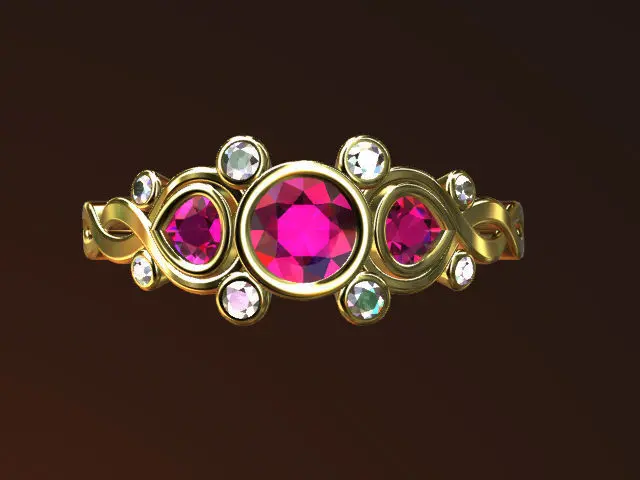 Twisted multi -stone ringFinger size: 5 1/2 USCenter stone: d=5mmsmall side stones: d=1.8mmpear shape stones: 3.2mm x 3.2mmTotal wight with stones 14k: 5.2gm