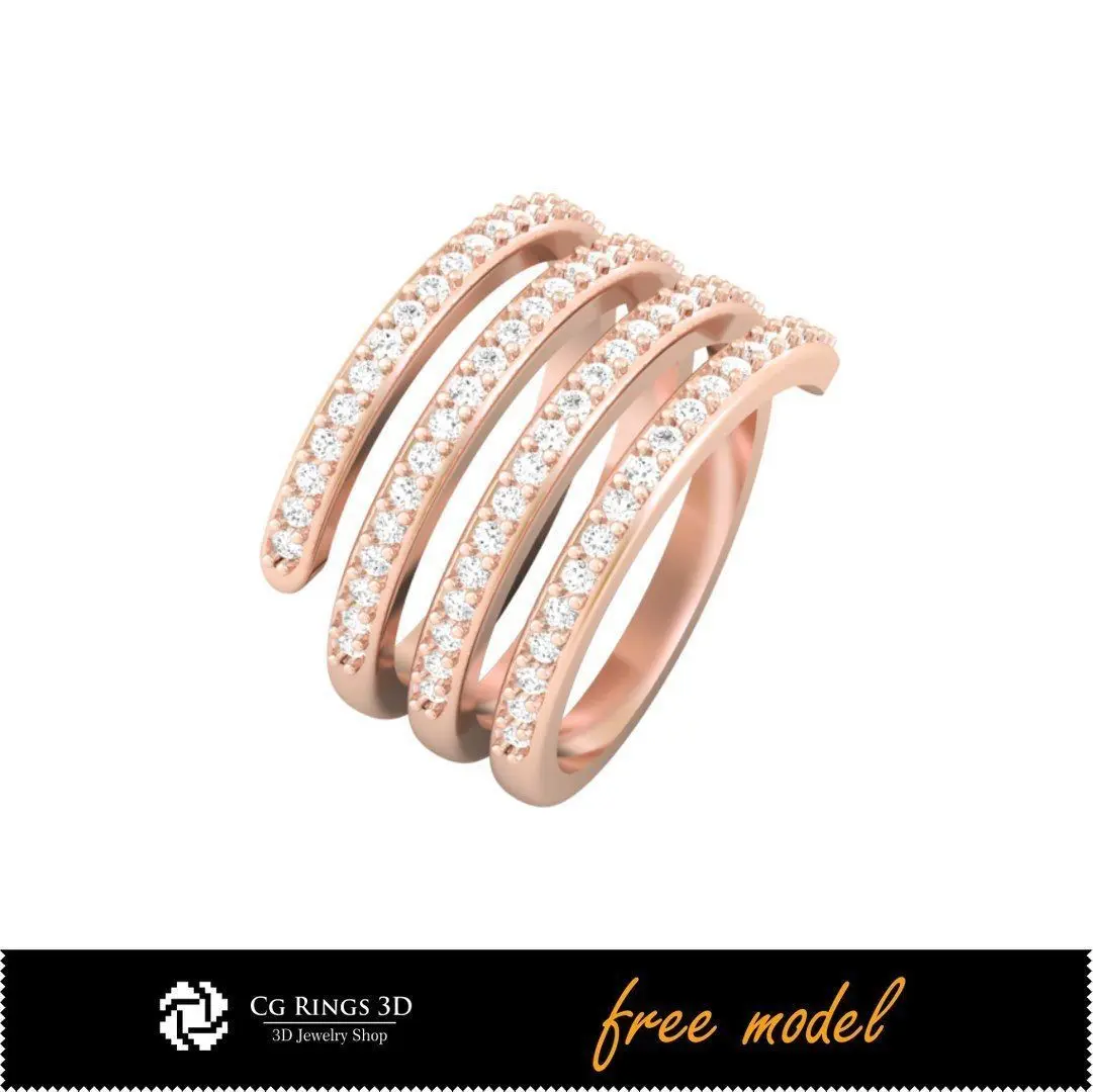 Diamond-Adorned Stripes:Embracing the twisted top are four distinct stripes, each meticulously set with a row of 14 brilliant diamonds. The diamonds catch the light with every movement, creating a mesmerizing sparkle that accentuates the beauty of the ring. The careful arrangement of these diamonds adds a touch of opulence and glamour to the overall design.