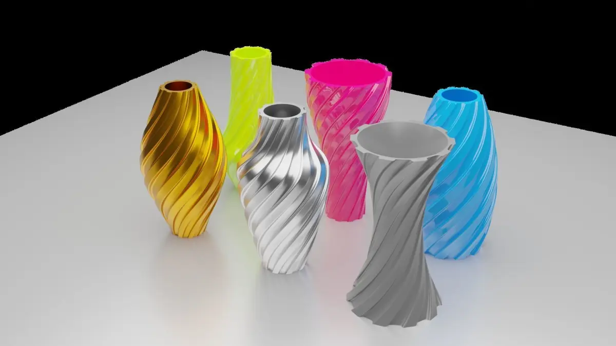 Six Twisted Wavy Vases with Six different forms, created using computational parametric tools to achieve the most accurate geometry with clean details, they could be used for architectural render purposes indoors and outdoors, and also for interior and decoration purposes, the two models could be 3d printed and come to live in scale 1:1 using the included STL files.