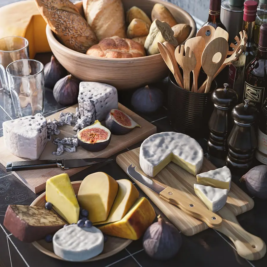 Two Assorted Cheese Wedges Food Models