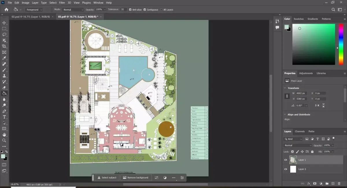 Two-Bedroom Villa Architectural Plan with Landscape, Pool, and Entertainment Area