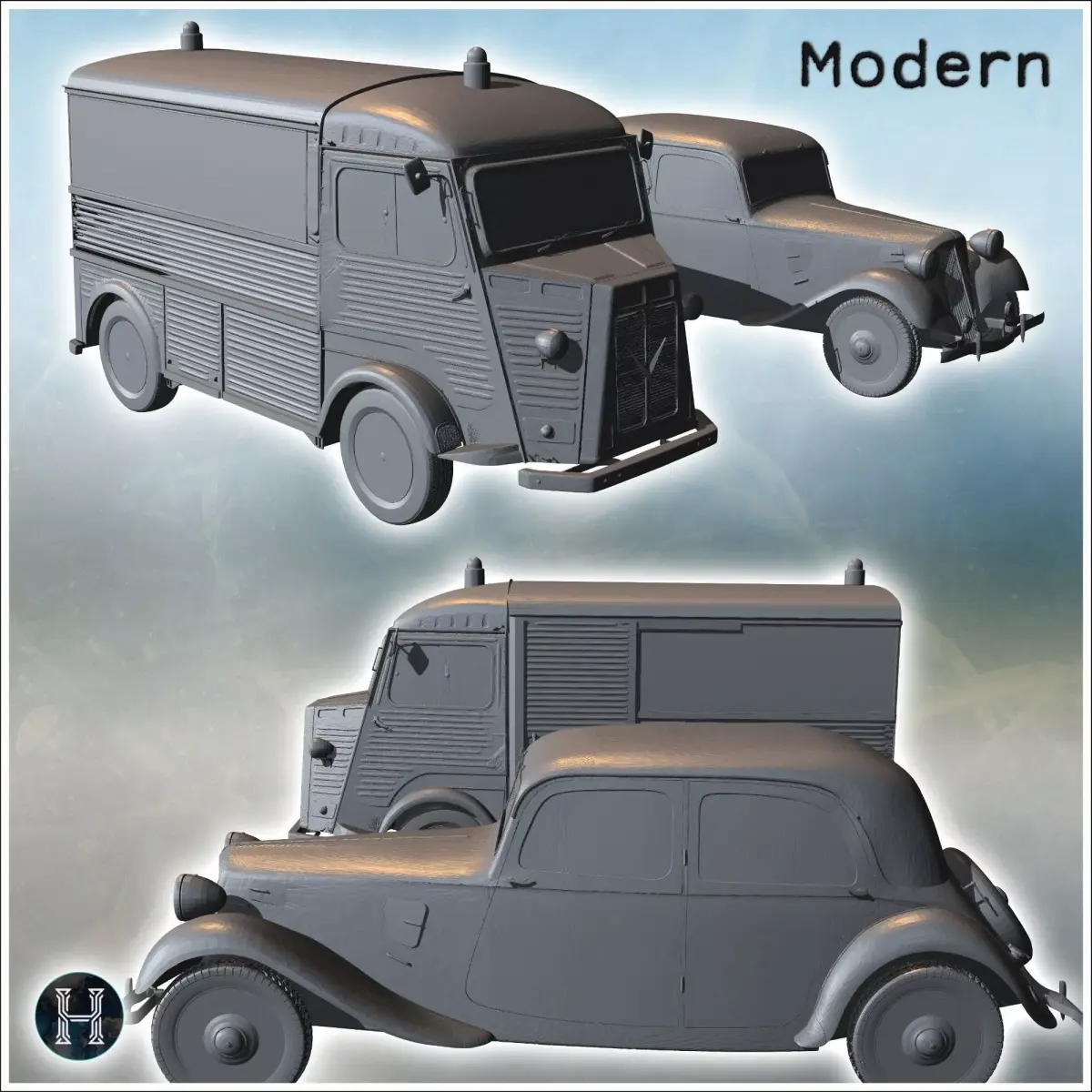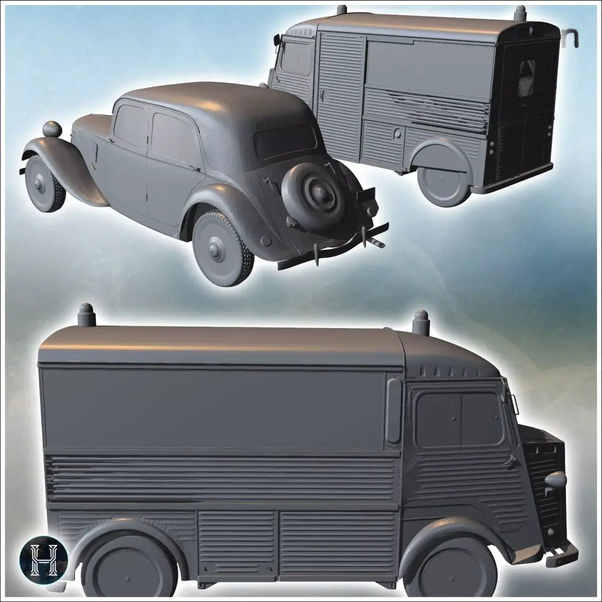 Home Catalog Two classic vehicles one van and one car both with vintage desig 3D print model