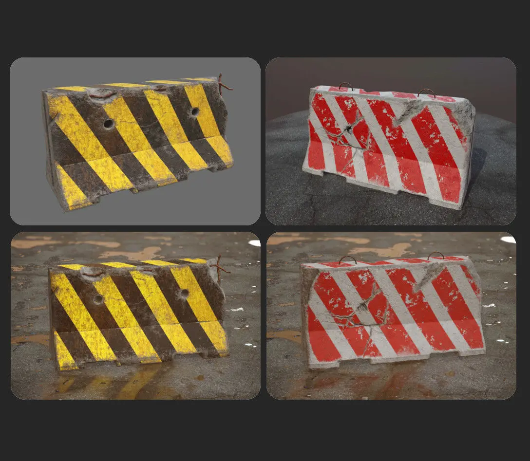 TWO DIFFERENT HIGH QUALITY LOW-POLY 3D CONCRETE BARRIER MODEL.A high quality, low-poly 3d model ready for Virtual Reality (VR), games and other real-time apps.