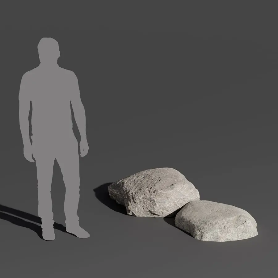 Two Cool Toned Smooth Round Large Rock Boulder Models