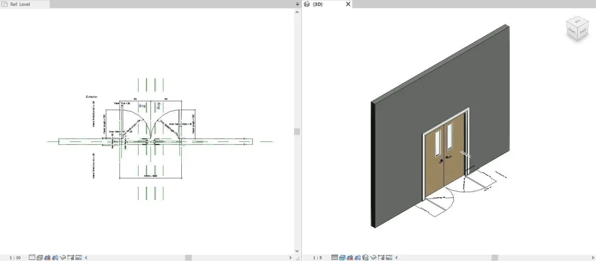 Two equal leaf timber solid door frame with viewing panel to manuf's detailSize : 1500(W) x 2100(H)