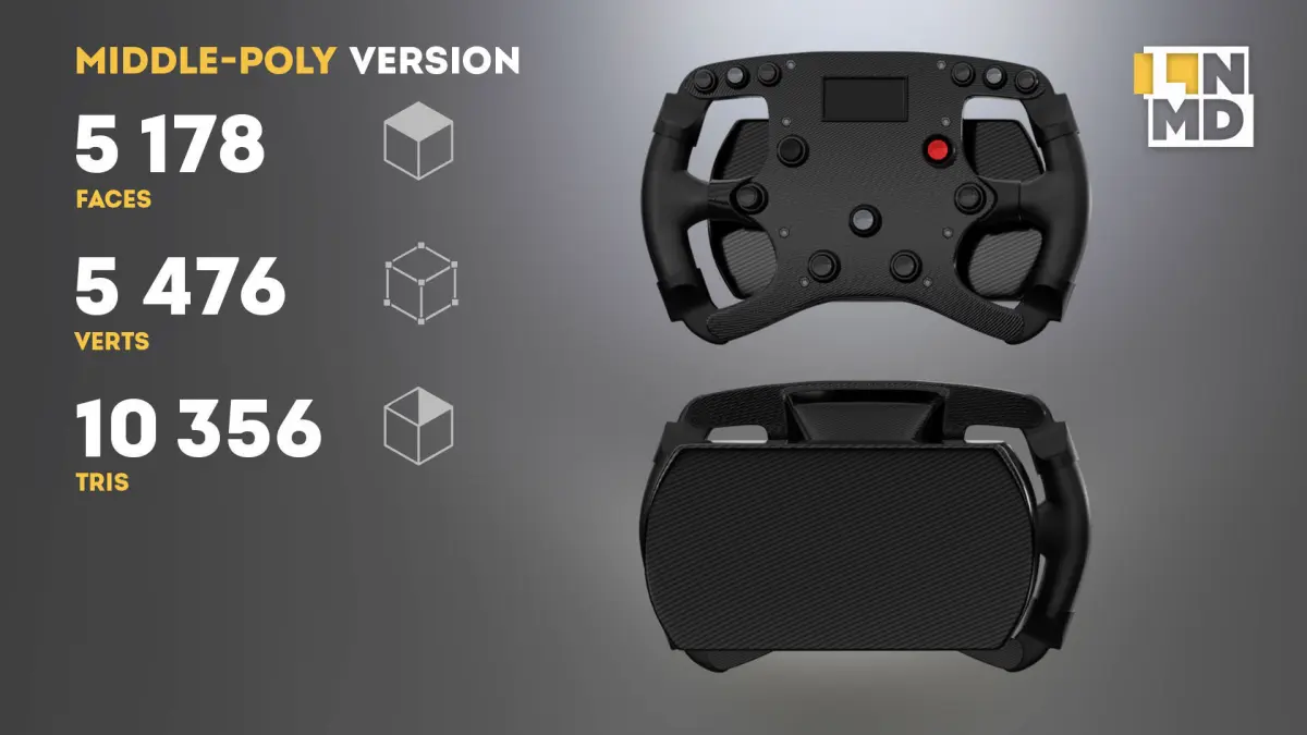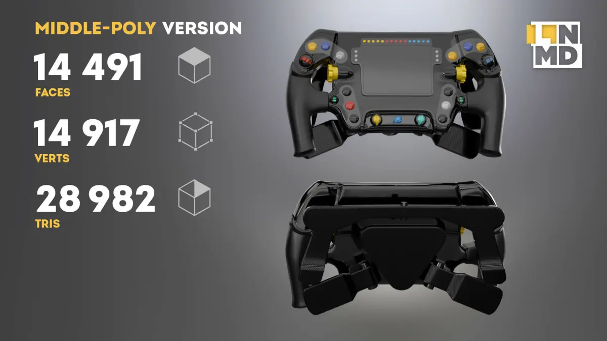 High Definition Formula 1 Steering wheels 3D model fully textured.Most parts of the model have been created as SubDivision/Meshsmooth surface. The models come in middle and low poly.