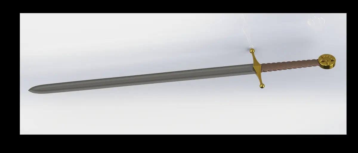 Magnificent Two-Handed Great Sword 3D Model with Brass Guard, Leather-Wrapped Handle, and Floral Pommel