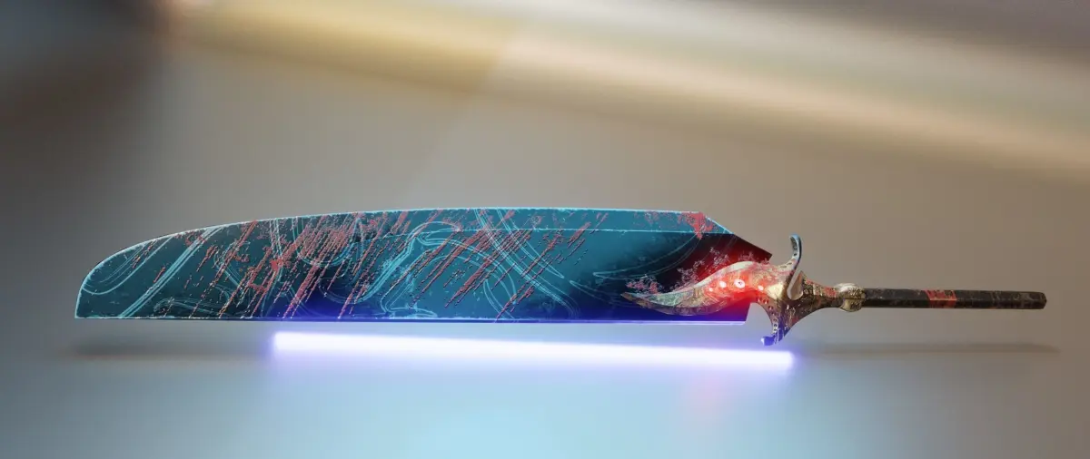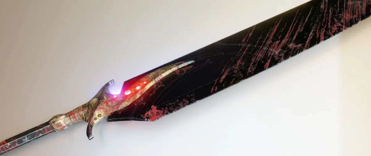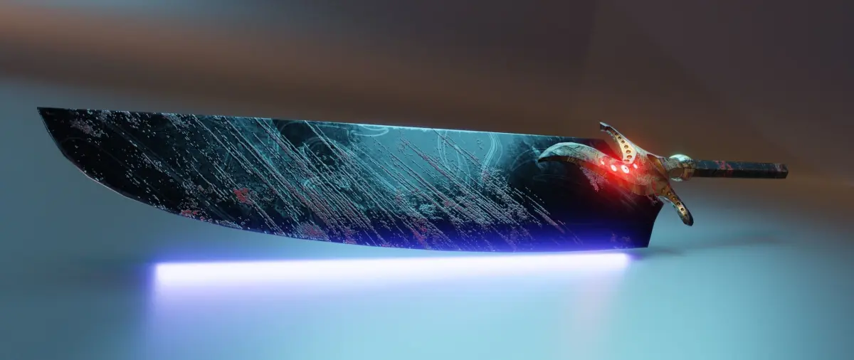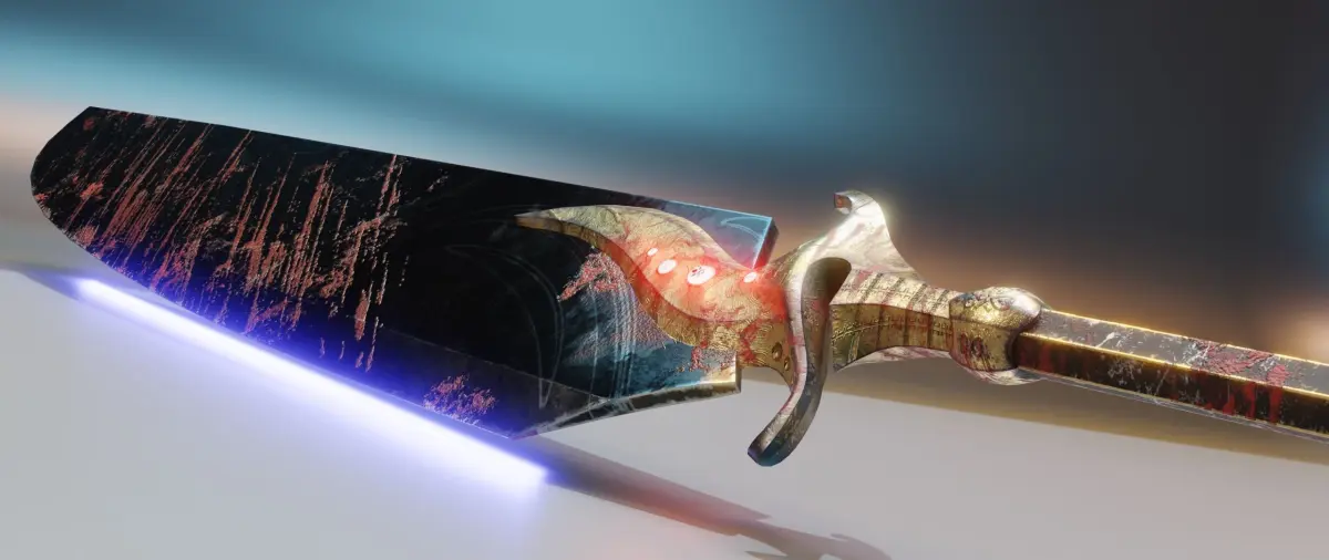Two-handed sword in the style of Dark Souls. This sword is called Bad Luck Blade.PBR texture:Deffuse, Roughness, Metalic, Height, Normal_OpenGL, Mixed_AO, AO, Emissive.