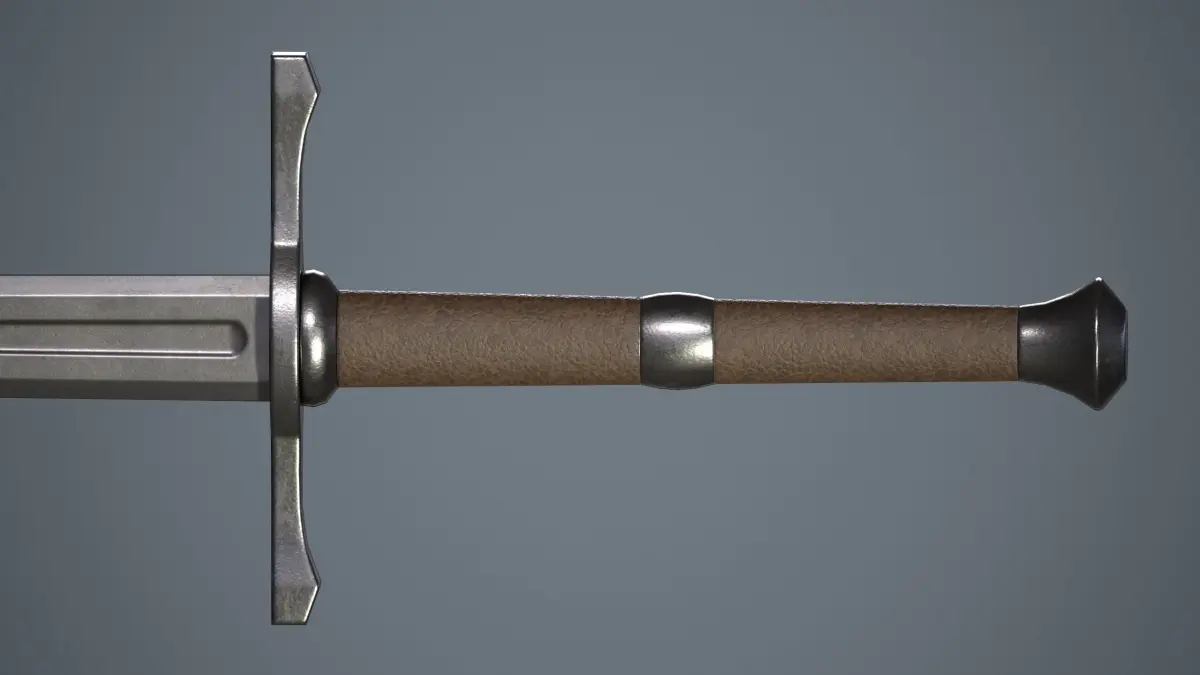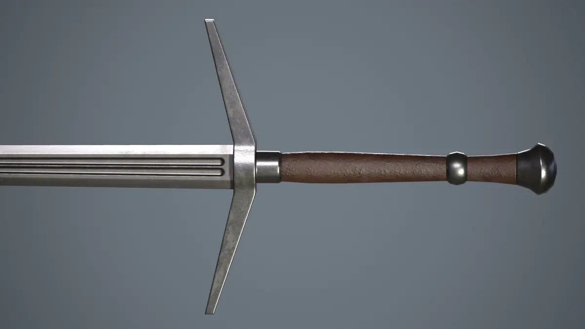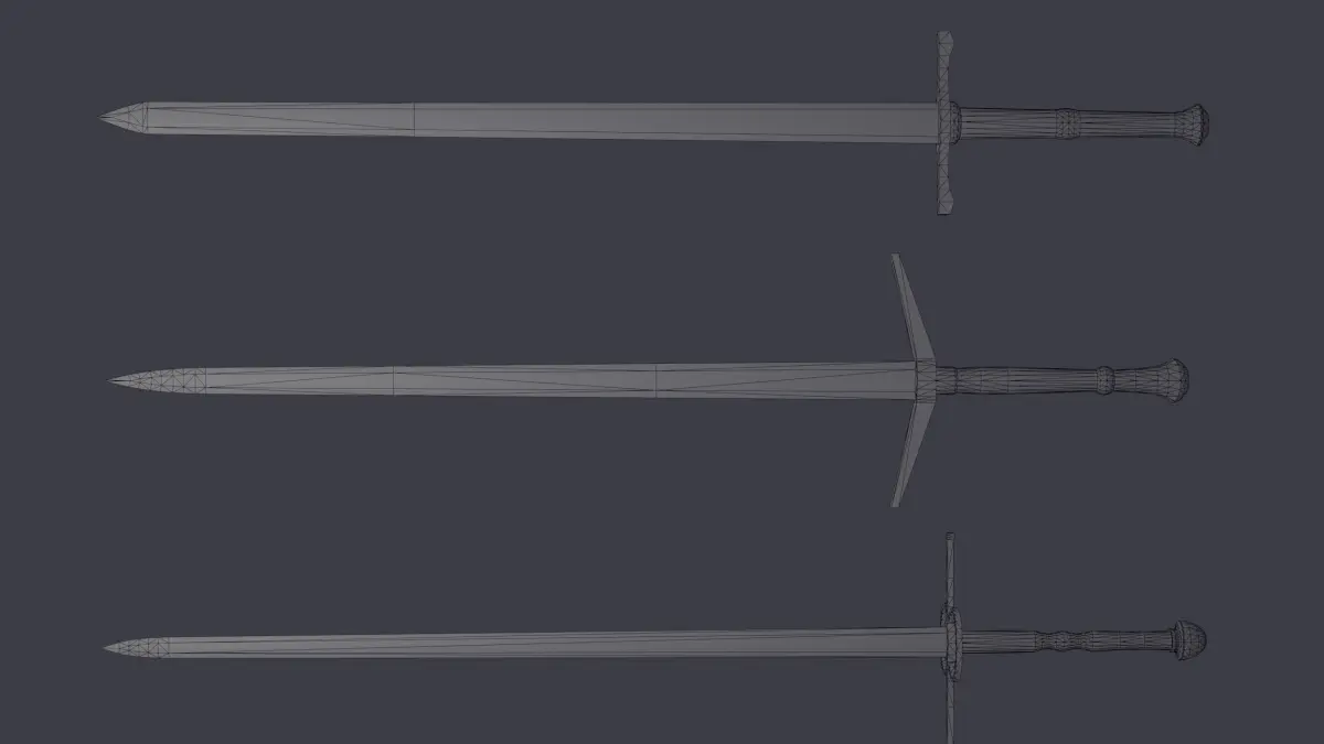 n a set of 3 two-handed swords PBR, the same texture 4096-2048 (albedo, normals dx, normals opengl, roughness, metallic, specular, glossines, orm).