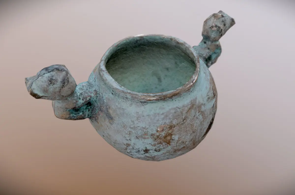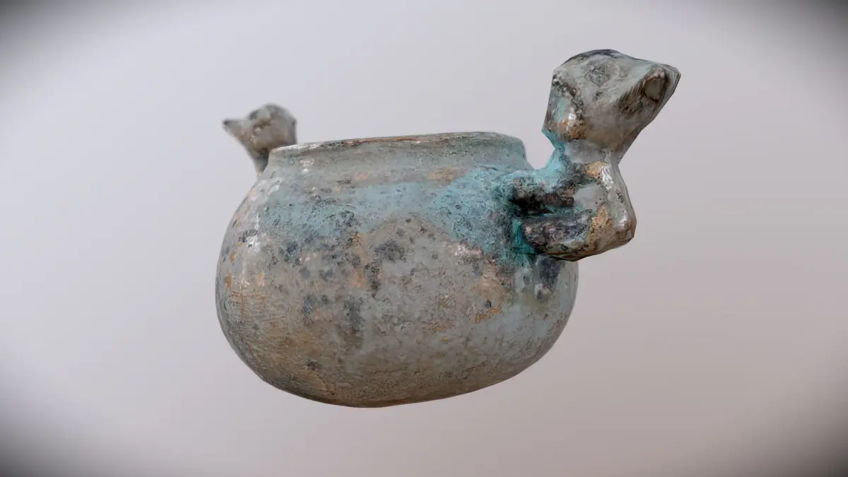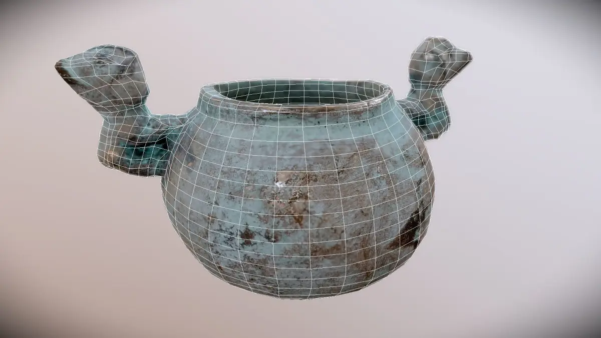 A small rusted bronze bowl adquired in an antique bazar in Perú. Has two jaguars on the sides. Supposedly used for drinking ritual brevages or something.High resolution model made with photogrammetry (near 3M polygons) available on request. Mid resolution photogrammetry model with diffuse texture only (30k polygons) included. This model contains low poly model with PBR textures. Original Blender file included.