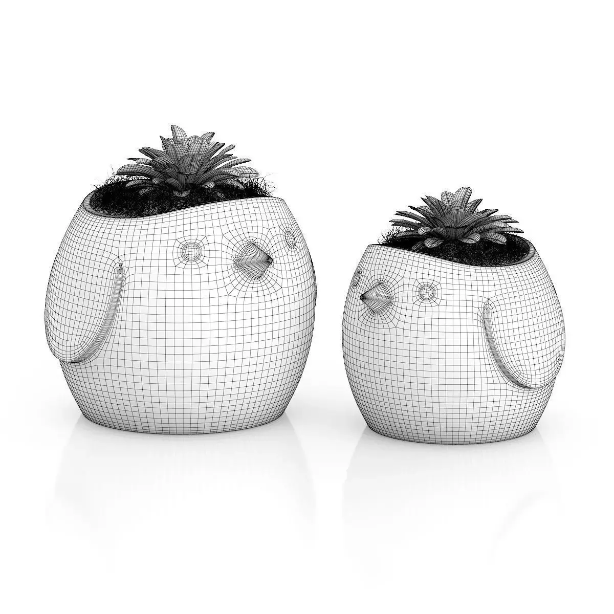 Two Plants in Bird Pots 3D model