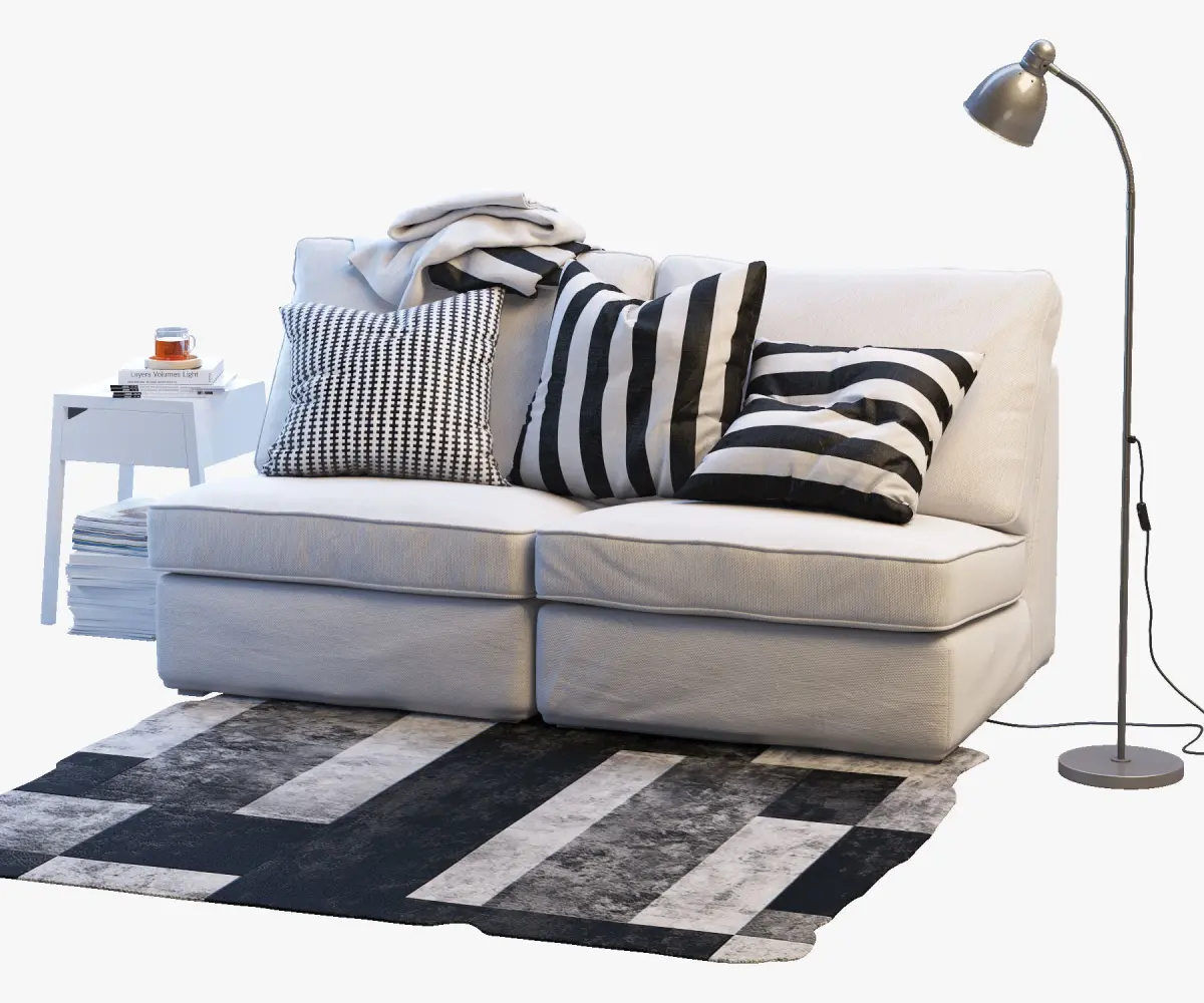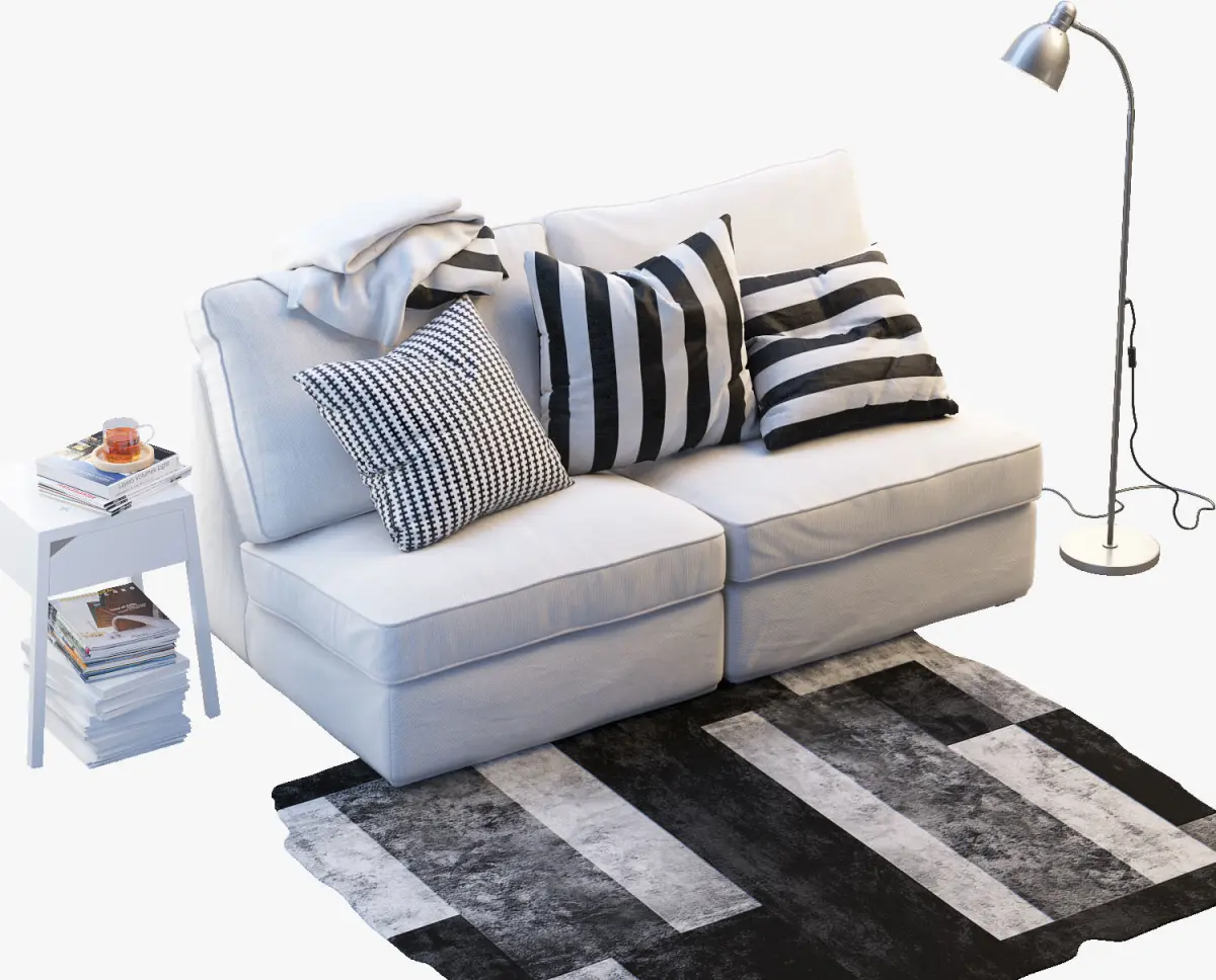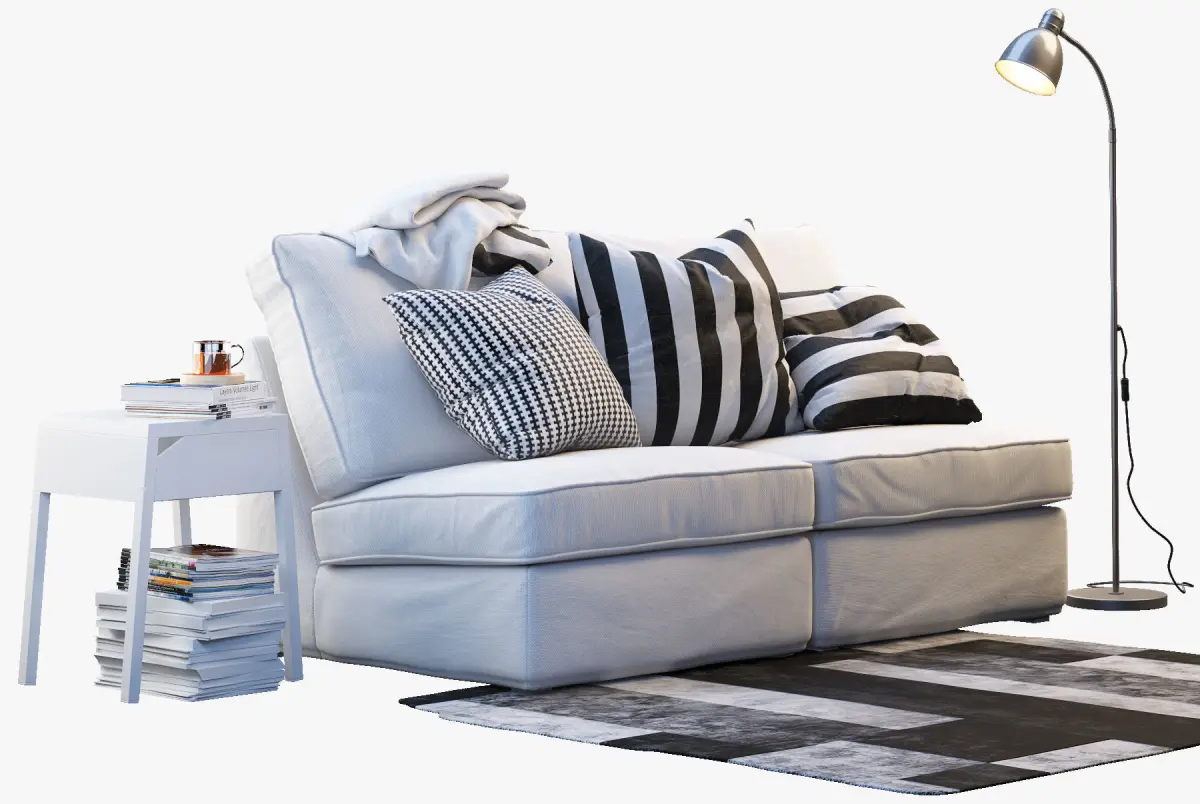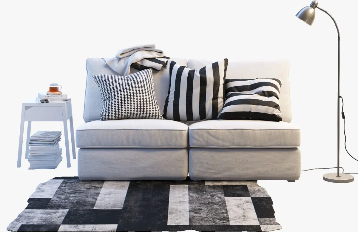 Two-seat sofa KIVIK 1 size: 1810 x 970 x 925 mm; SELJEBedside table w wireless charging, White