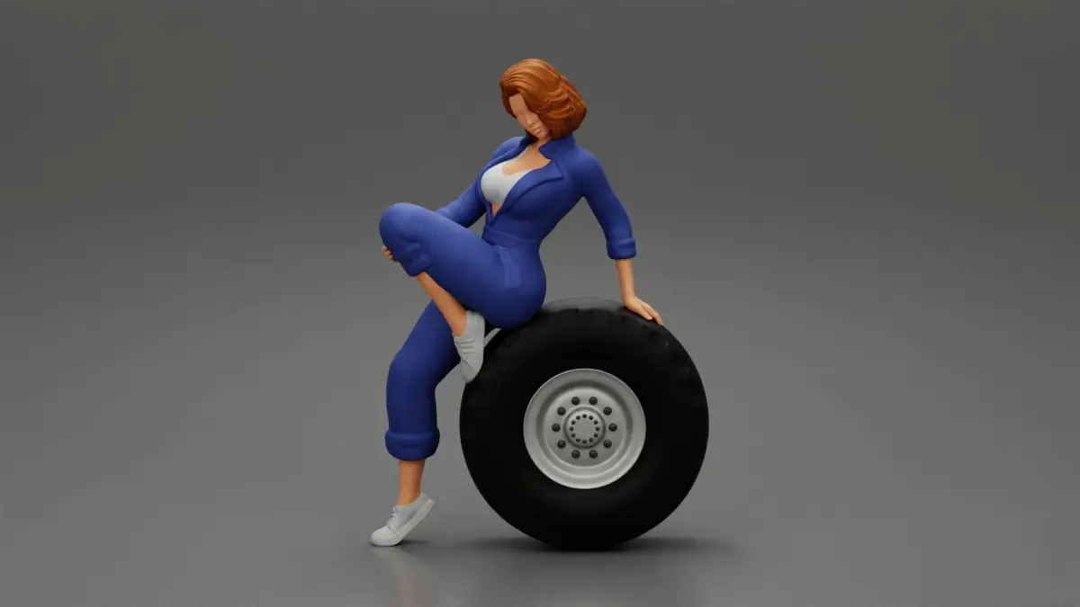 Two sexy girls in mechanic suits are sitting on a truck tire 3D print model