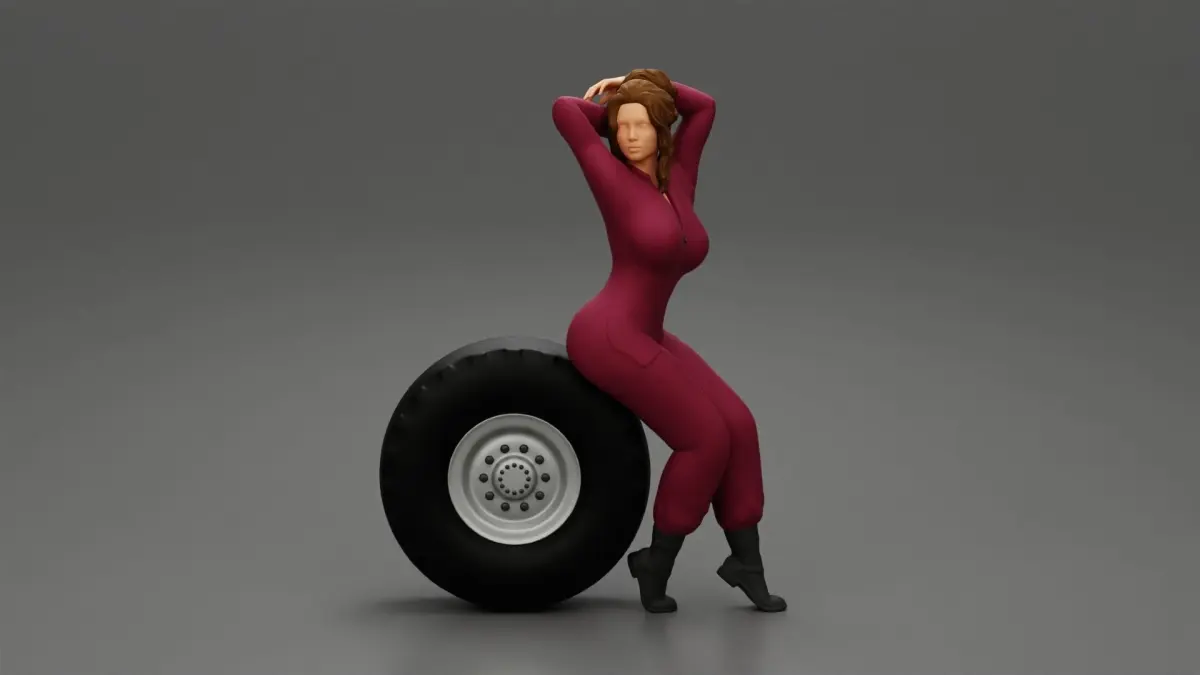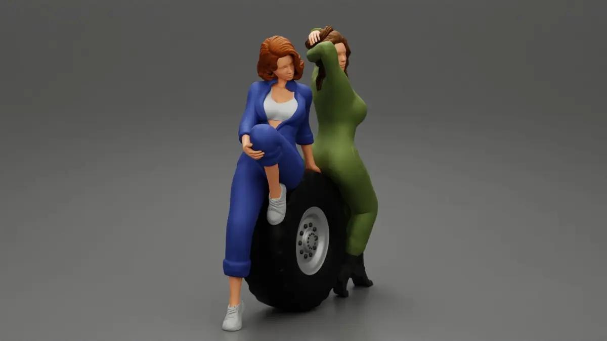 Home Catalog Two sexy girls in mechanic suits are sitting on a truck tire 3D print model
