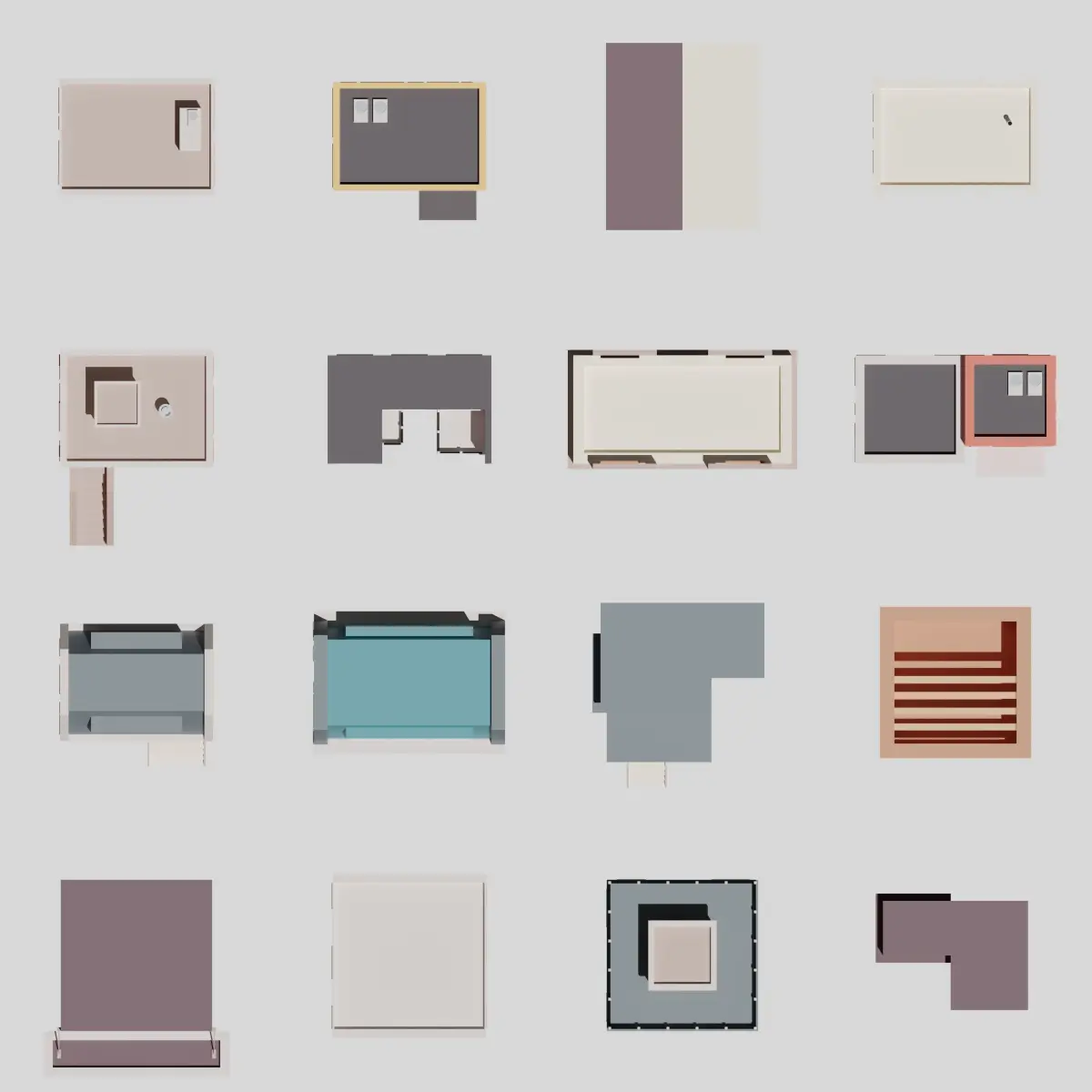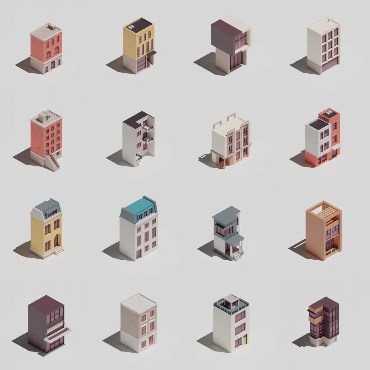 Low poly pack of buildings consists of 16 buildings and sundries.