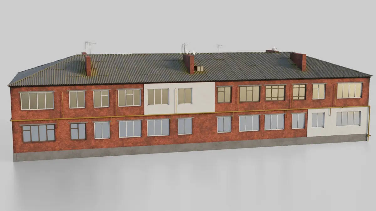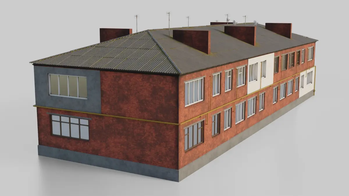Typical Ukrainian two-story apartment buildingOriginally created with Blender