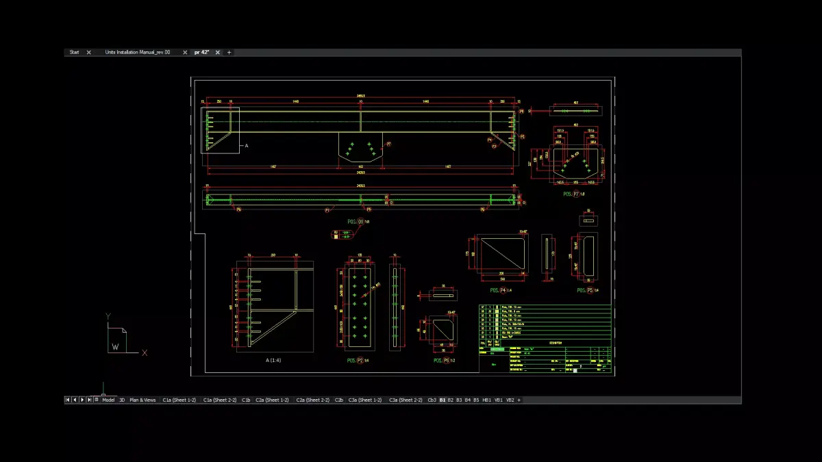 Model & Drawing Features:• Full assembly of all structural components, showing how each part fits together• Detailed dimensions, hole locations, and quantities for all parts• Accurate representation of beams, columns, bracings, and connection details• Includes 3D model with multiple views (plan, front, side, isometric)• Separate layers for each structural component and connection part• Optimized geometry for visualization or import into CAD/BIM workflows