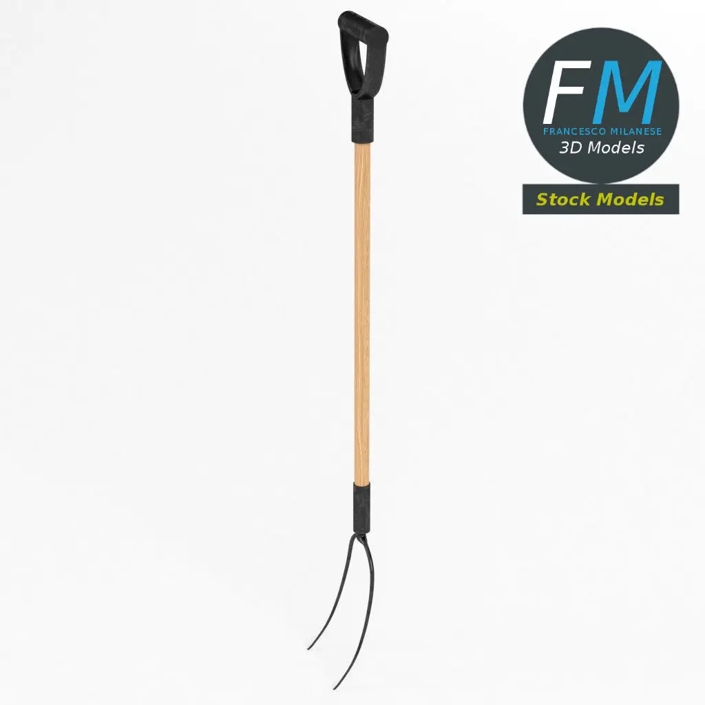 Two-tined pitchfork 3D Model. Production-ready 3D Model, with PBR materials, textures, non overlapping UV Layout map provided in the package.