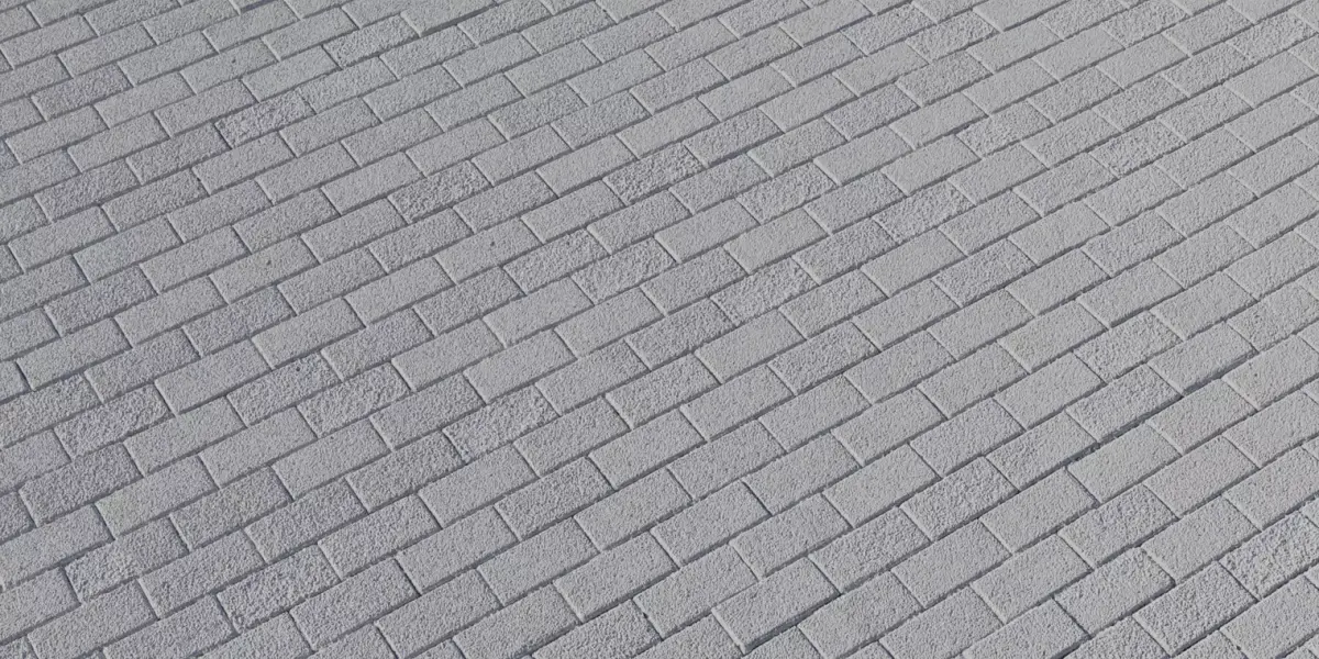A seamless, photorealistic two‑tone clay‑concrete paver material featuring alternating light and dark rows, crisp chamfers, and fine exposed‑aggregate grain for modern plazas, walkways, and driveways in games and archviz. Clean tiling and calibrated PBR values maintain readable micro‑roughness and sharp joints under HDRIs and directional sunlight, while the subtle color shift adds depth without noisy patterning over large areas. Height and normal maps preserve granular sparkle and edge definition for convincing parallax at grazing angles with low shading cost.