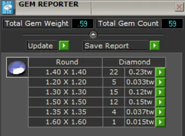 Diamond Size and Carat Weight: 59 brilliant cut diamonds. Total weight of diamonds 0.59 carats. Check the diamond chart attached in the image