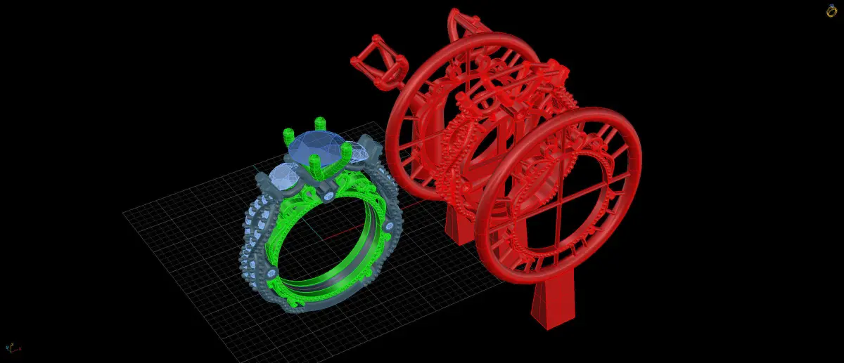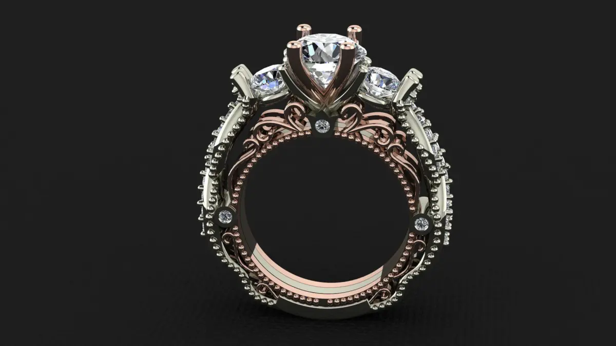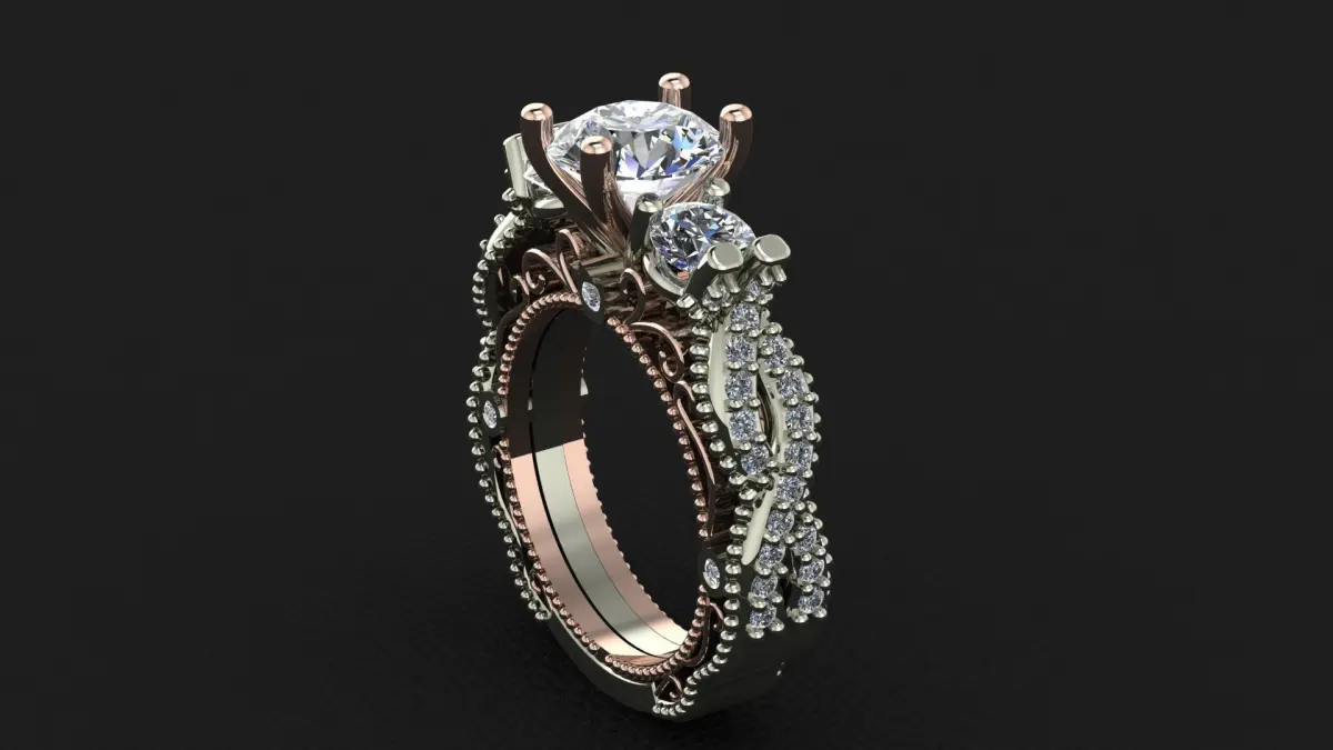 custome two tone wedding ring size 5 ready to print and cast all supports already saved on the stl files 1.5ct center stone ring is 1.01ct total 46 stones 10k-7.2g14k-8.1g18k-9.7g