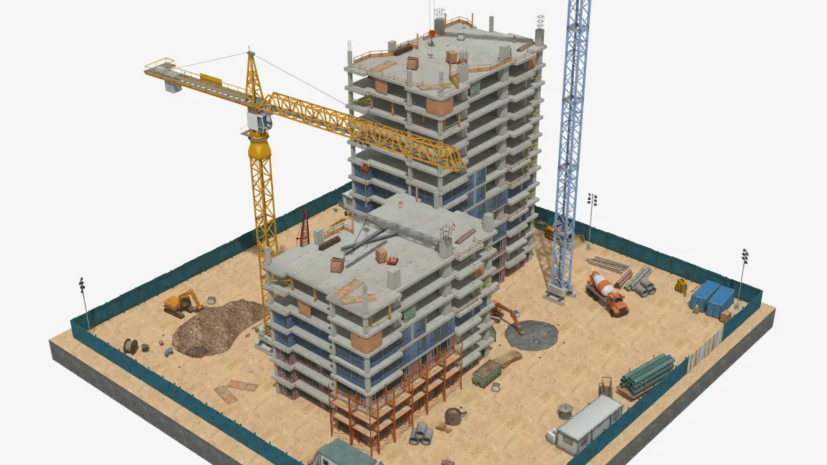 Large 3D Scene of Construction Building Site - 02