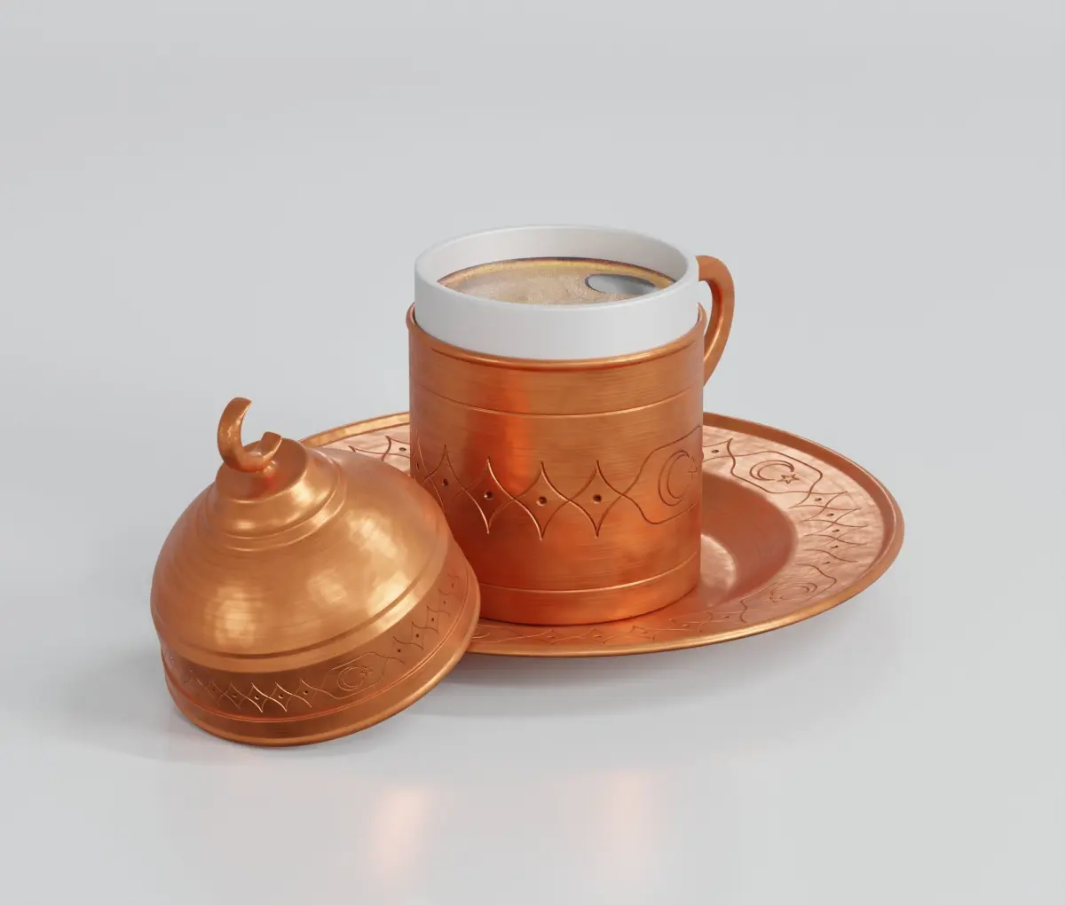 Two Turkish cup of coffee made with blender 3.0all of material done with blender only.there are 3 collections1 - cup with cap2- cup without cap3- camera and lightsand the floor plane,subdivision not applied, so it's easy to work with it