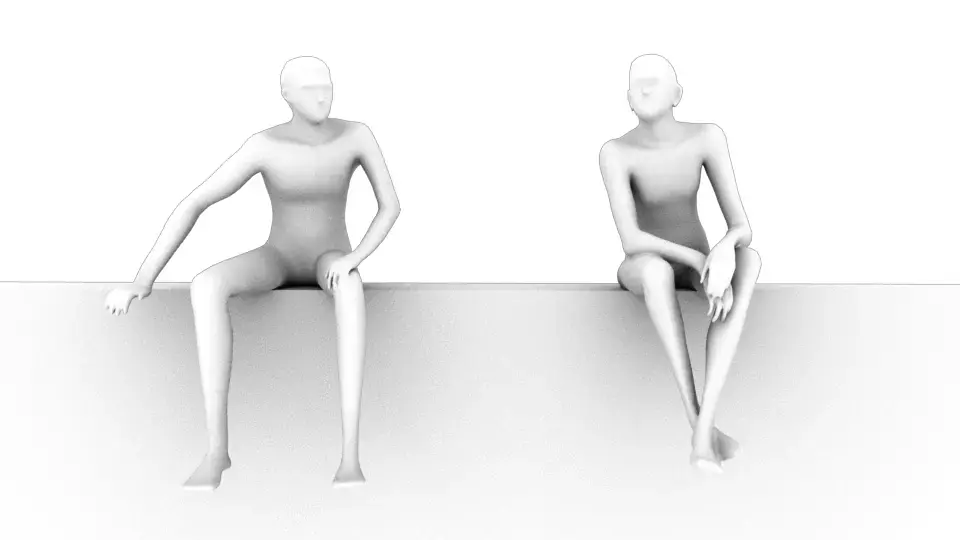 This high-quality stylized human sculpture 3D model set features two seated abstract human figures, designed with elegant proportions and a modern artistic feel. The models depict realistic sitting poses, ideal for architectural visualization, public art concepts, gardens, courtyards, galleries, and decorative scenes.