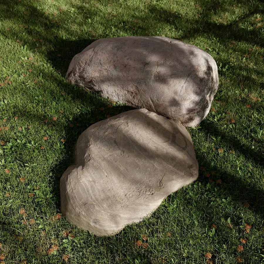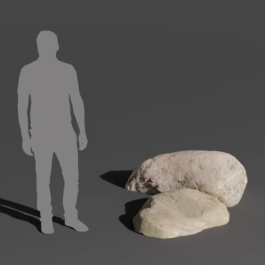 Two Warm Toned Smooth Round Large Rock Boulder Models
