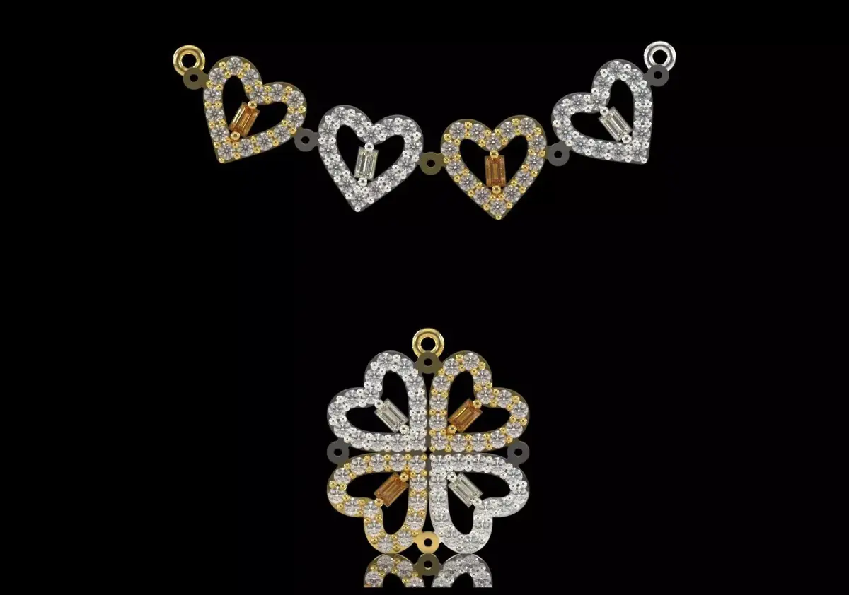 - Parts: The pendant is made of four separate small pendants, each in the shape of a Heart Shape.