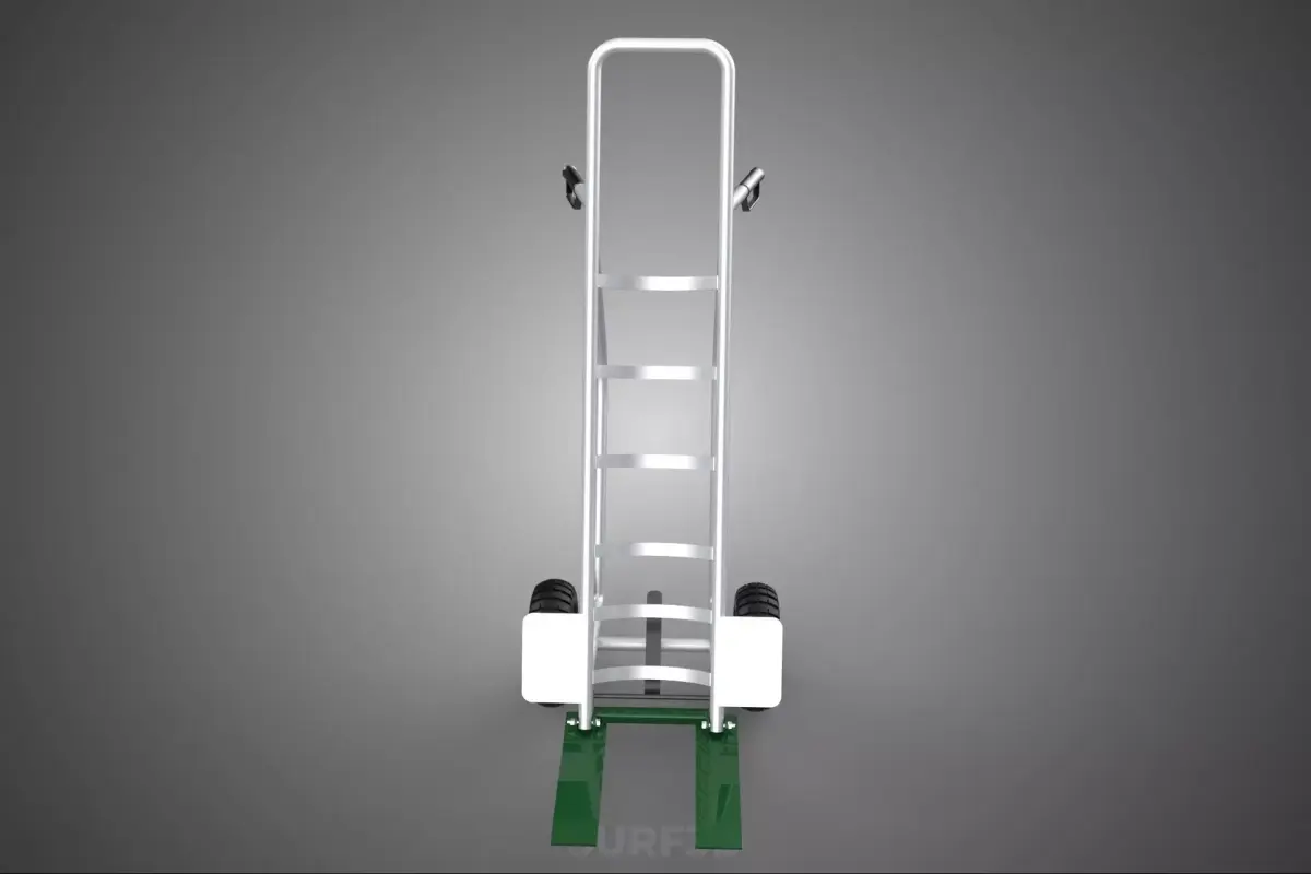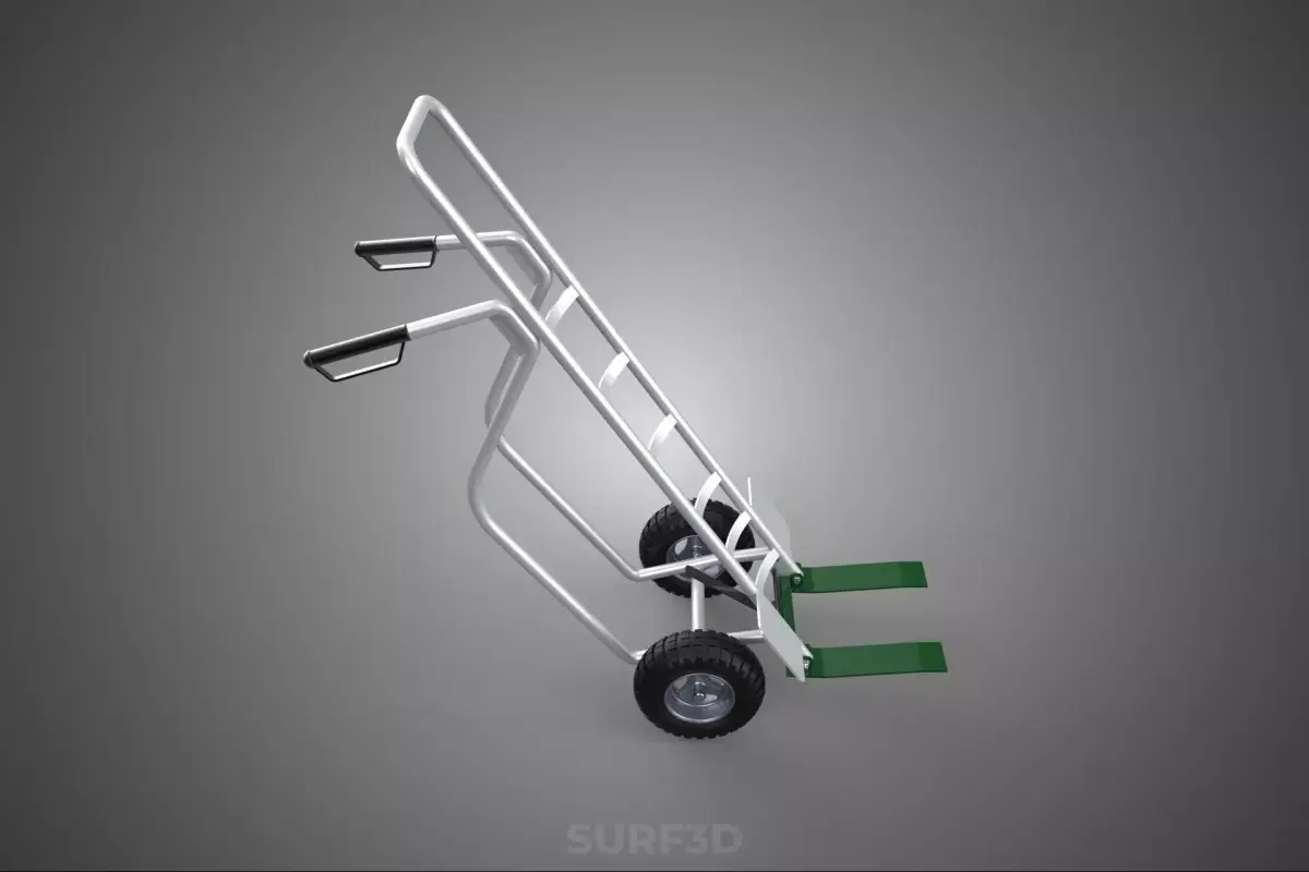 A professional industrial-grade two-wheeled hand truck designed specifically for heavy-duty material handling tasks. This specialized manual transport device features a robust fork assembly reminiscent of a pallet jack, allowing for the efficient lifting and relocation of crates, boxes, and small-scale pallets. Constructed from high-strength tubular steel with a powder-coated finish for corrosion resistance, the frame provides exceptional durability and a high load-bearing capacity. The ergonomic handle design is optimized to ensure maximum leverage and control during the initial tilting phase, significantly minimizing physical strain on the operator while maneuvering bulky items. Large, puncture-proof rubber wheels are mounted on heavy-duty axles to facilitate smooth movement across diverse industrial surfaces, ranging from polished warehouse concrete to uneven outdoor loading docks. This equipment is indispensable for logistics operations, distribution centers, and retail storage facilities where speed and safety in moving goods are paramount. The design integrates a mechanical tip-and-tilt mechanism that leverages basic physics to move significant weights with minimal human effort. Maintenance requirements remain low due to the lack of hydraulic components, making it a reliable and cost-effective solution for intermediate load transport between a standard dolly and a full-size hydraulic pallet jack.
