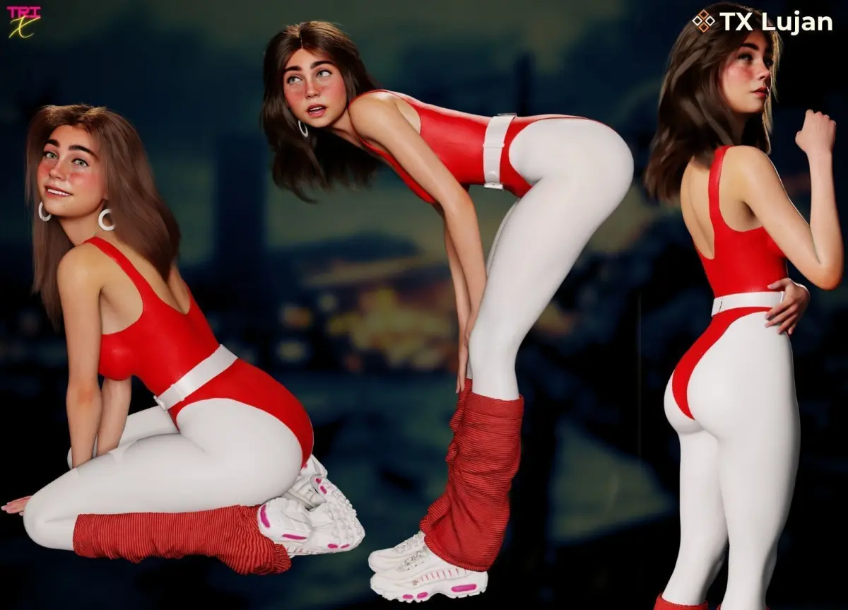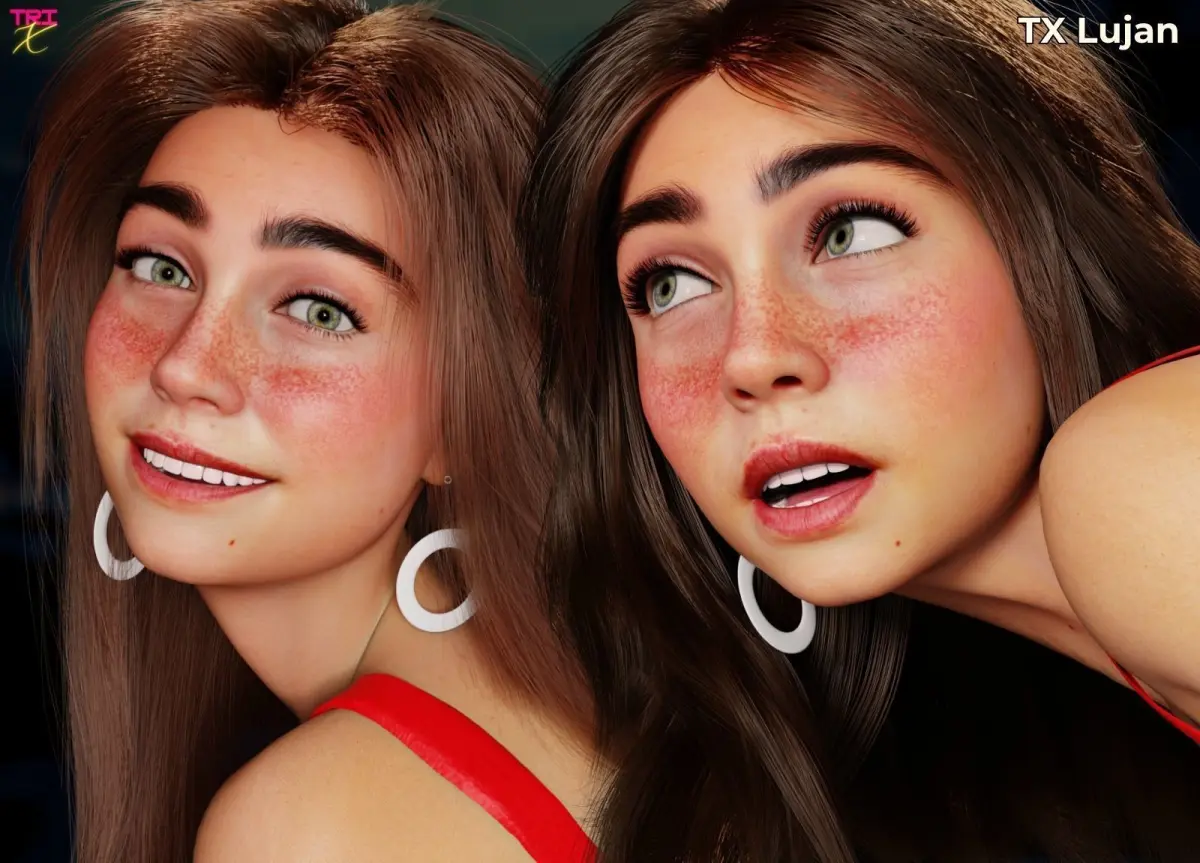 Crafted with the meticulous care of a master, TX Lujan for Daz Studio emerges as an unparalleled homage to elegance and allure. Her hair, a cascade of rich brown hues, frames a complexion of porcelain adorned with scattered freckles, each a testament to her unique journey.