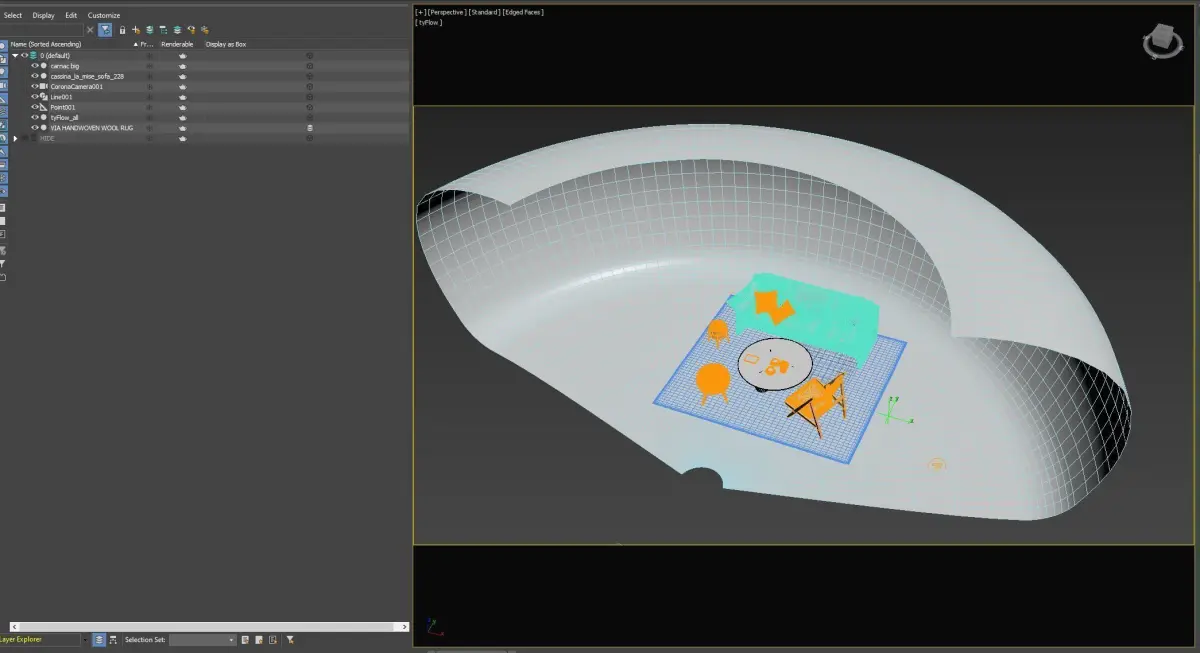 Ty-flow preset creating in the free version 1.005 Animated dummy is revealing object.Animated with Physic.HDR light included.Furniture without materials included
