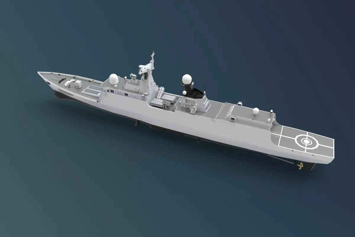The Type 054A uses the same stealthy hull form as the Type 054.[5] The forward launcher for HQ-7 short-range SAM[12] is replaced with a 32-cell vertical launching system[4] for medium-range HHQ-16 SAMs and Yu-8 antisubmarine rockets.[5] The smaller main gun and Type 730 close-in weapon system (CIWS) are also installed.[4]