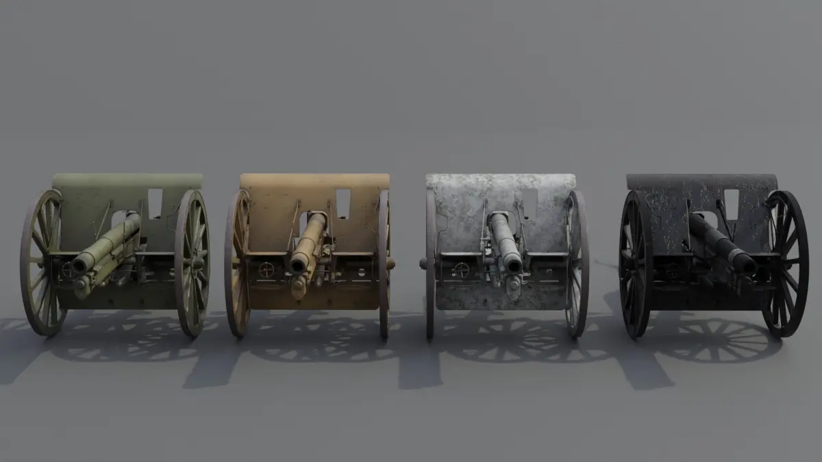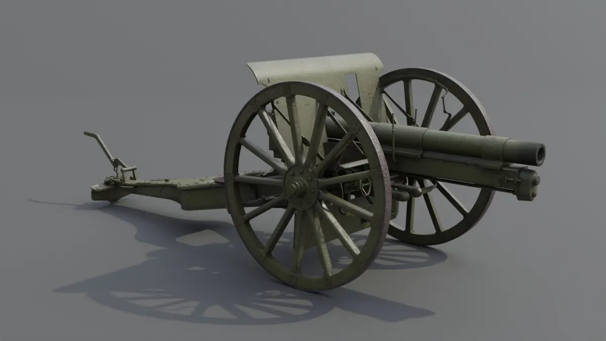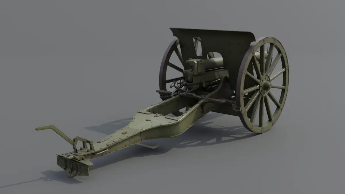 Description:The Type 38 75 mm field gun was a 1905 German design which was purchased by the Empire of Japan as the standard field gun of the Imperial Japanese Army at the end of the Russo-Japanese War. The Type 38 designation was given to this gun as it was accepted in the 38th year of Emperor Meiji's reign (1905).Although Japan had extensive experience with artillery, as the result of its war with Russia in 1904-05 and had the technology and industrial infrastructure to construct medium or large caliber naval weapons prior to World War I, planners at the Imperial Japanese Army General Staff turned to Krupp in Germany, for the latest trend in artillery design. Initial units of Krupp 7.5 cm Model 1903 were imported, and then eventually over 2,000 units, designated Type 38 in Japan, were produced under license by the army’s Osaka Arsenal.The original Type 38 gun had a conical interrupted screw, a single box type trail which limited gun elevation to only 16°30'. Also, there were no equilibrators as the trunnions were at the gun barrel's center of balance. All of these shortcomings were remedied with a redesign following World War I.
