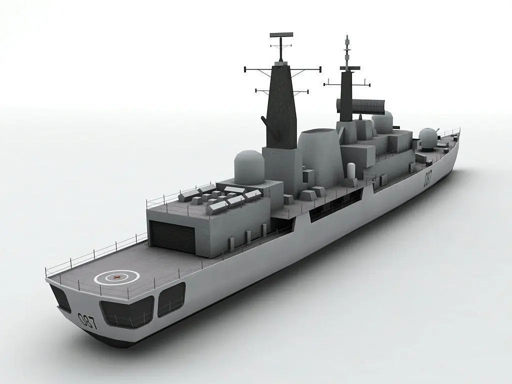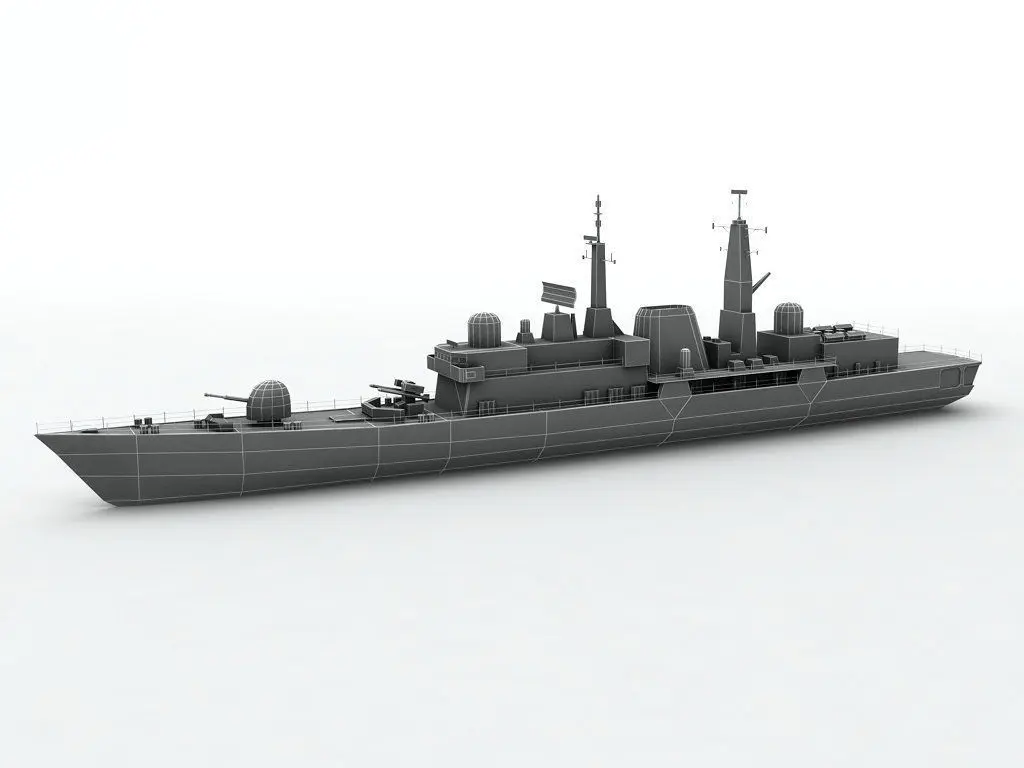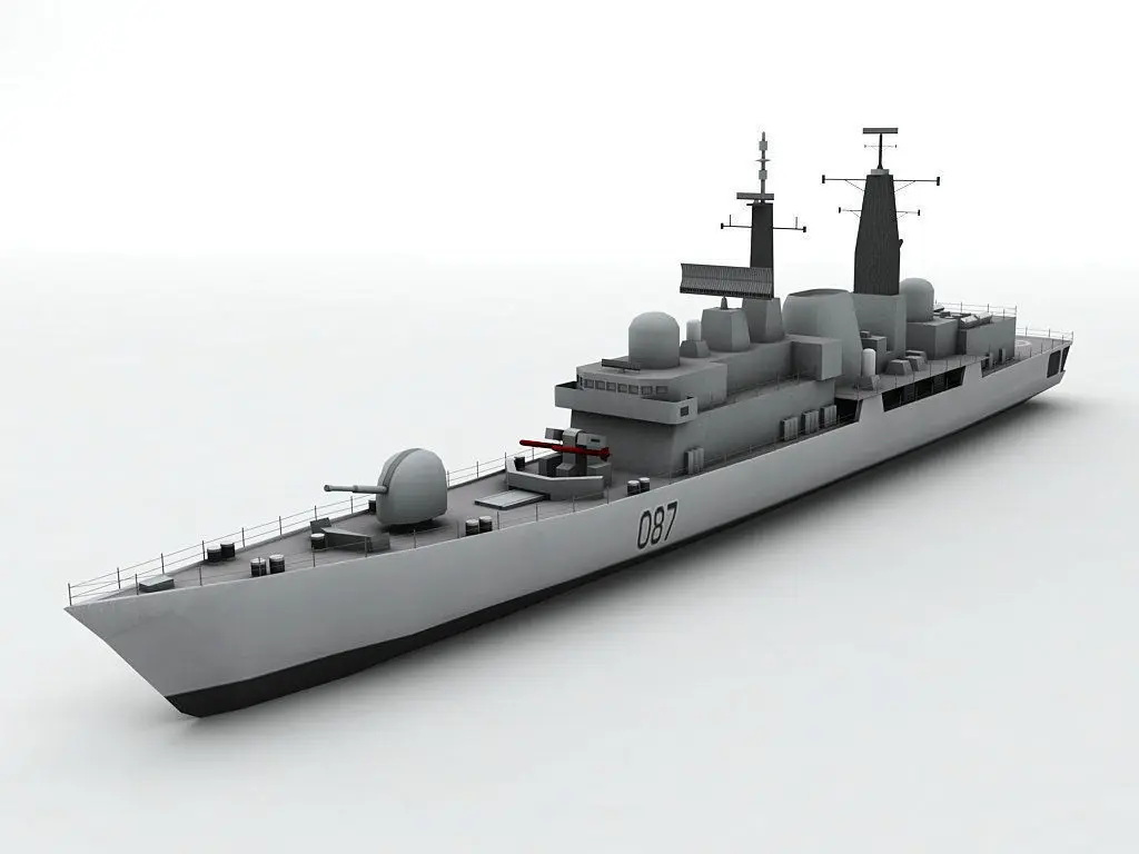 Type 42 Destroyer Military Ship(Exterior Only) This model was designed to scale from blueprints. Although all the major dimensions are correct (length, height, width, etc.) every exact arc and measurement was not taken into account for engineering purposes. This model is best suited for entertainment and multimedia.