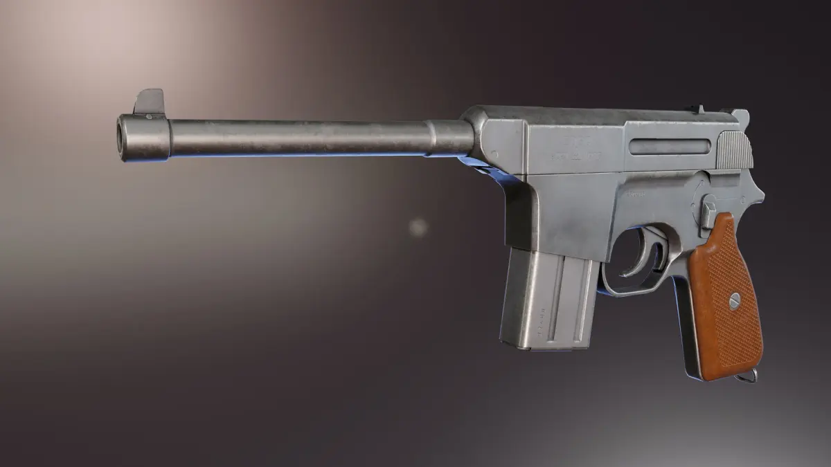 Chinese Pistol developed by Norinco between 1970-1980 for vehicle crews. Slightly inspired by good old German Broomhandle Mauser, but with few major and minor changes.