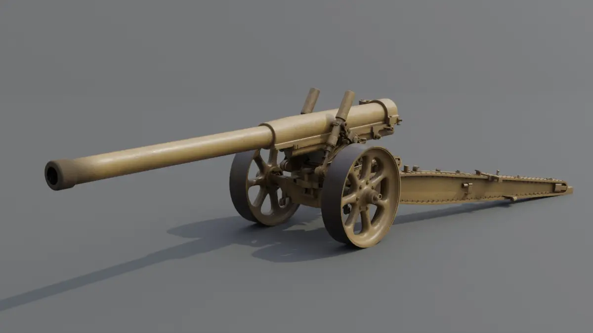 Description:The Type 89 15 cm cannon was the main gun of the Imperial Japanese Army's heavy artillery units. The Type 89 designation was given to this gun as it was accepted in the year 2589 of the Japanese calendar (1929) It was widely used from the Manchurian Incident to the end of World War II, for example, Nomonhan, Bataan and Corregidor Island, Okinawa. The Type 89 15 cm gun was comparable to the U.S. M1918 155 mm GPF cannon, but it was less efficient than some similar heavy-caliber guns of other nations in World War II. Limitations notwithstanding, the Type 89 15 cm cannon was easier to transport and set up than other Japanese heavy artillery pieces.The gun had the split-box type trail with detachable spades and a single-axle gun carriage. The traversing hand wheel and the scale were located on the left side of the carriage. The elevation scale, the range drum, and the sight were on the right side of the carriage. It fired a shell considerably heavier than that used in the 150 mm howitzer. The Japanese were sufficiently satisfied with this gun to provide it with a fixed mount for siege use in 1930, but as a heavy field piece it had certain definite limitations. Traveling in two loads, it took longer to emplace than some weapons of corresponding caliber in other modern armies and yet it was outranged by all of them. However, long-range 15 cm cannons which broke down into two loads were not unique to Japan during World War II.