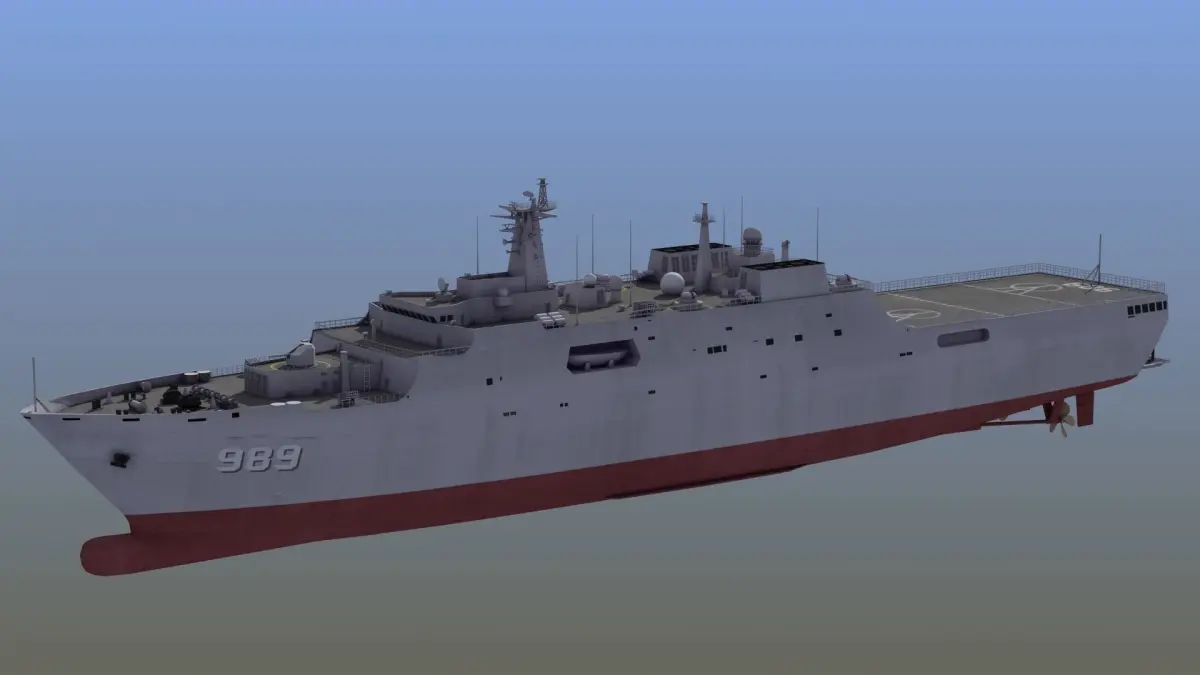 Type071 Amphibious Transport Dock assault ship as used by the Chinese Navy. This particular ship is the Changbai Shan (989). NATO code name is the 'Yuzhao Class'. Great multipurpose 3D model. Native format is 3ds Max. No plugins required to achieve renders shown above. Texture maps are located in their own zip download. Model built to real world scale - units are meters.