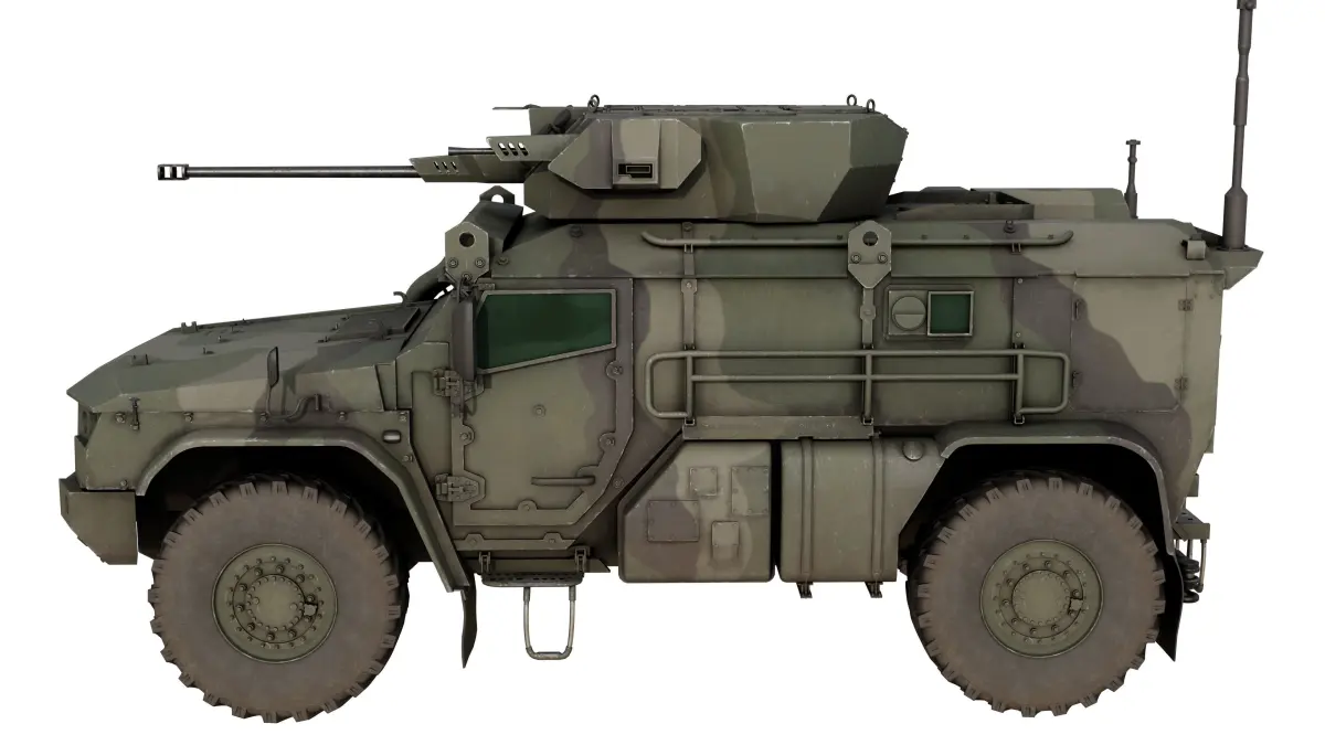 Typhoon VDV K-4386 Russian Paratroopers 4 wheeled APC, used for recon assault and fire support.This vehicle has 30mm GSHa72A autocannon and 7.62mm PKT machinegun placed at the turret. The weapon station is controled remotly frominside the vehicle. The vehicle is armored to withstand small arms fire and mine resistant.