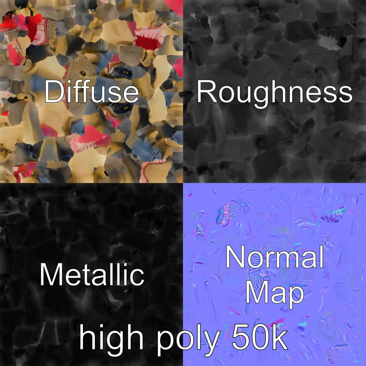 The model's textures are PBR, including Diffuse, NormalMap, and reflection/roughness/metallic, suitable for any modern rendering engine. All models are accurately unwrapped and have no overlapping UVs. Textures are 4096x4096 in size.