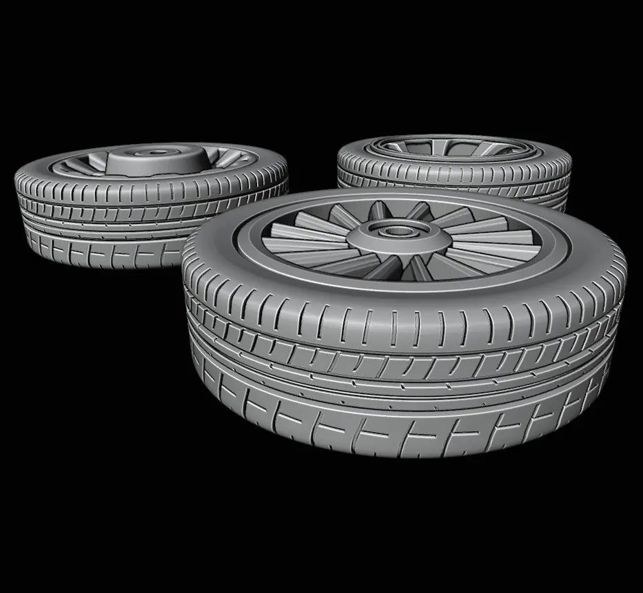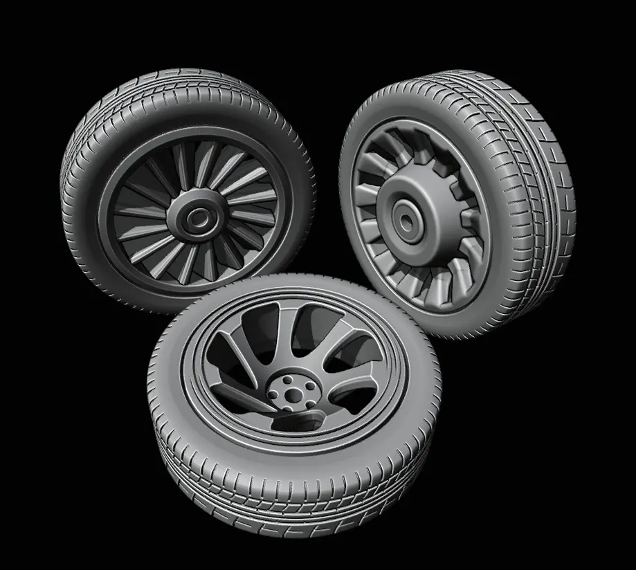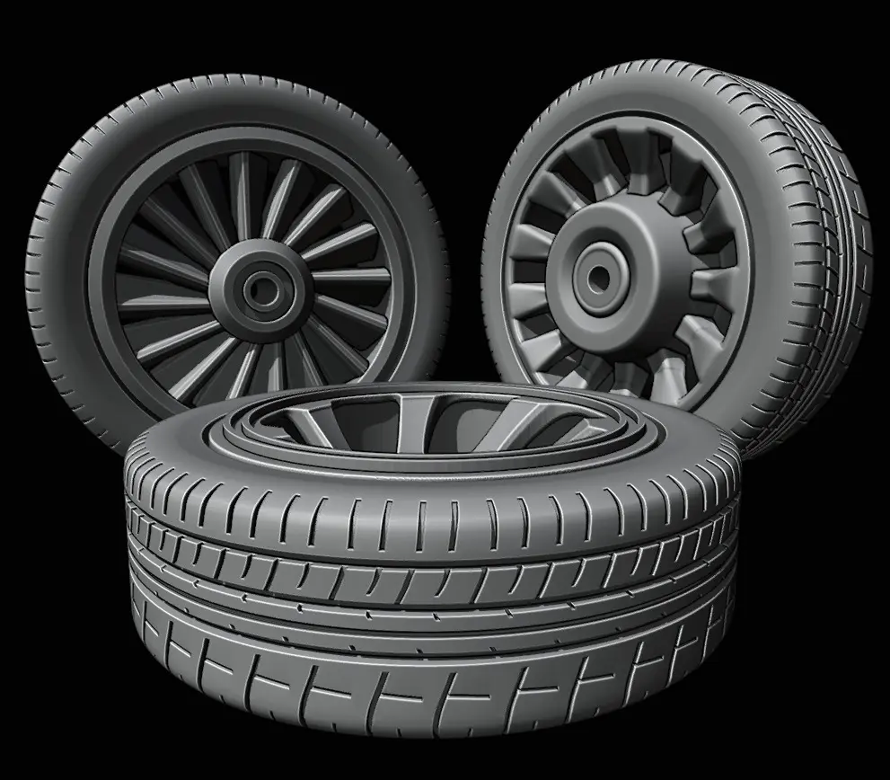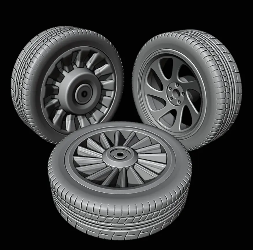 Tyre & 3x Alloy Wheel Types for 3.75in, 6in & 12in Figure Diorama ( 1:18, 1:12 & 1:6 )