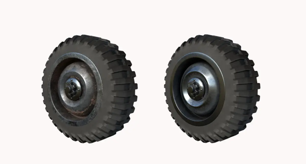tyres jeep ( clean & dirty version) 3dsmax,fbx,( obj = maya,blender,zbrush) pbr maps 2k maps ( clean and dirty rims as shown in images includes substance painter original file. A editable file included ( available to export 1024 2k 4k maps )