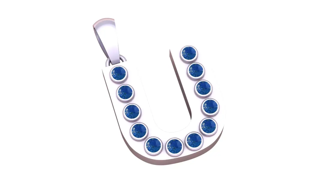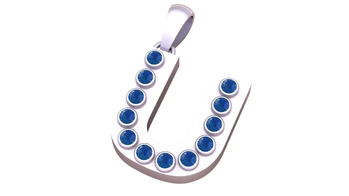 U Initial Gold Pendant Ruby Stone 3D PRINTABLE MODEL 3D print model